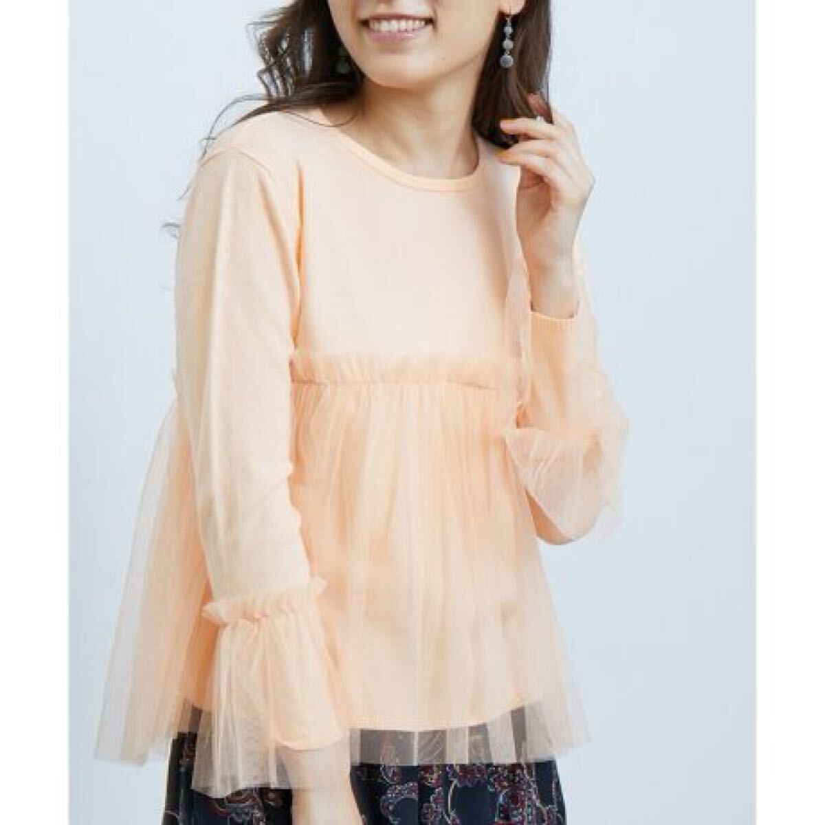 袖口と身頃にチュールレースをあしらったデザインプルーバー。