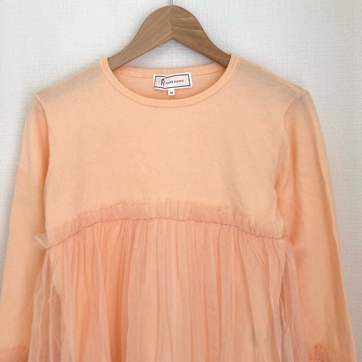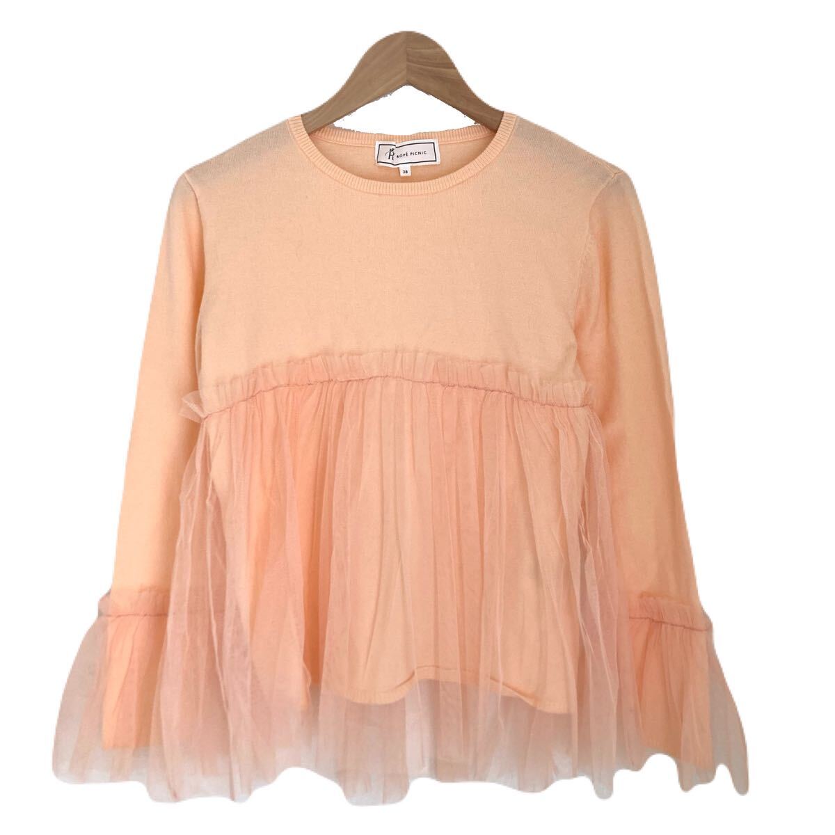 ロペピクニック チュール シャツ ブラウス 長袖 レディース レース ふわふわ トップス 丸首