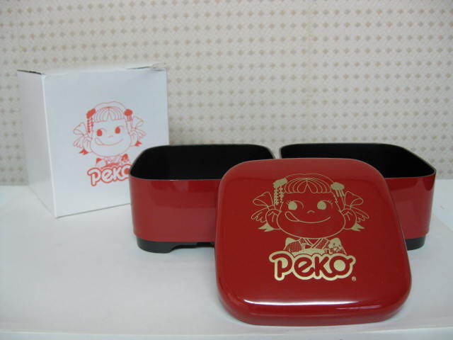 不二家 非売品 ペコちゃん お重箱◆和風 重箱 2段式 弁当箱◆箱入 お菓子なし