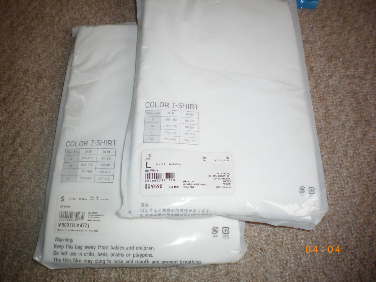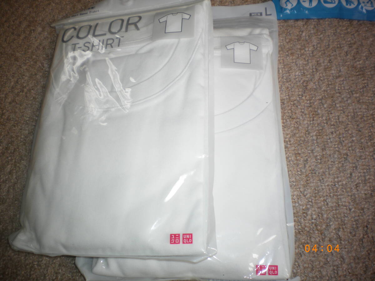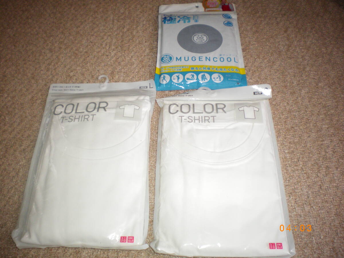 百三十八 未使用 ユニクロ UNIQLO カラークルーネックTシャツ半袖 S・Mサイズ 白2枚 おまけに振ると極冷無限タオル です。