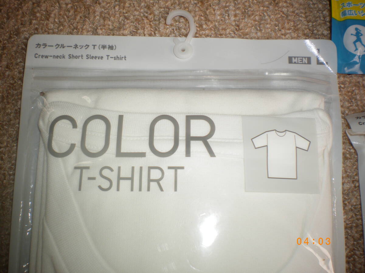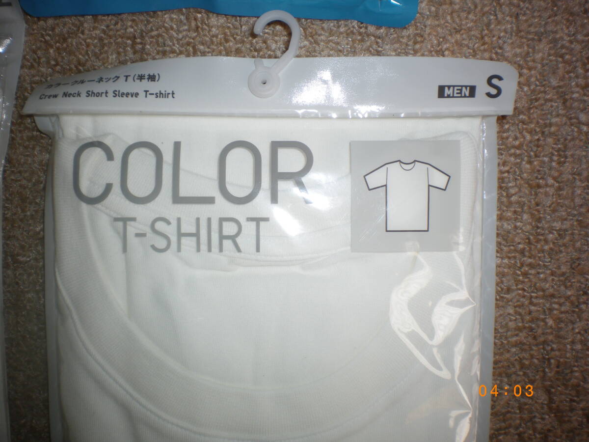 百三十八 未使用 ユニクロ UNIQLO カラークルーネックTシャツ半袖 S・M 白2枚 おまけに振ると極冷無限タオル 全国定形外410円発送可能