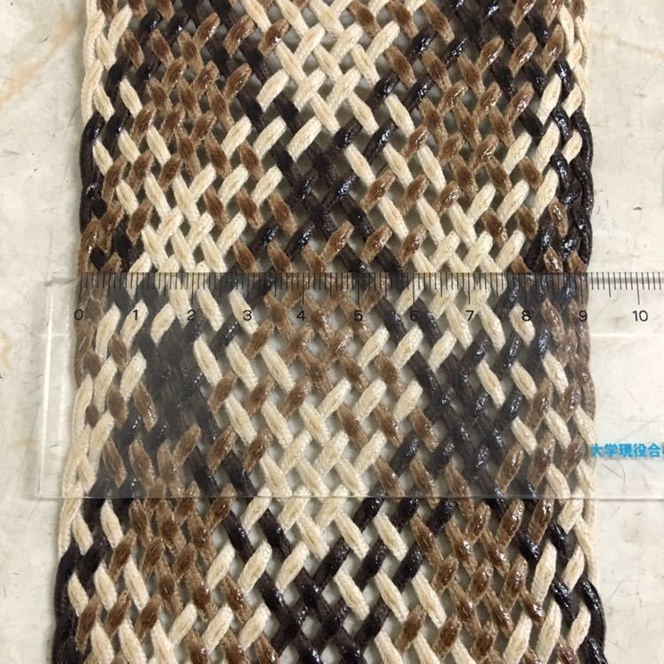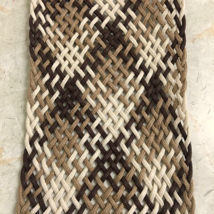 数色に染色したアクリルの紐を33本使用して製紐機で組み上げ、特殊な液を使い艶出しを施した大変凝った商品となっております。