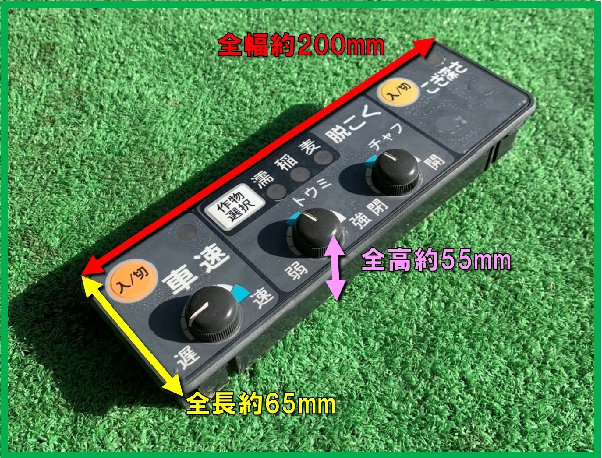 当社は国家資格を持った整備士・ベテラン整備士など10名以上の整備スタッフがチェックした商品の販売を行っております。悪いと判断した箇所は本文に記載しております。但し完璧なチェック、時間の経過により状態が変化する場合なども含め、全ての商品を完璧に点検することはできません。中古品現状渡しに、ご理解ある方のみ入札をお願い致します。お客様にて現品確認、チェックして頂く事も可能です。お問い合わせの上、ご来店ください。 経年・機具特有のサビ・汚れ・小傷・などみられます 写真に写っている車速脱穀コントロールパネルが全てです。