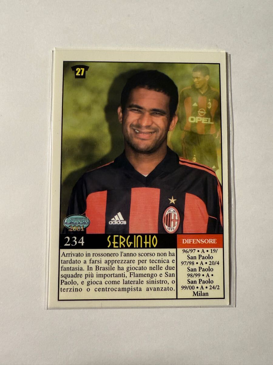 2001年に発売されたMC Calcio 2001のセルジーニョです。(他にも当時のスター選手のシングルカードを大量に格安で同時出品しておりますので、宜しければご確認ください。)