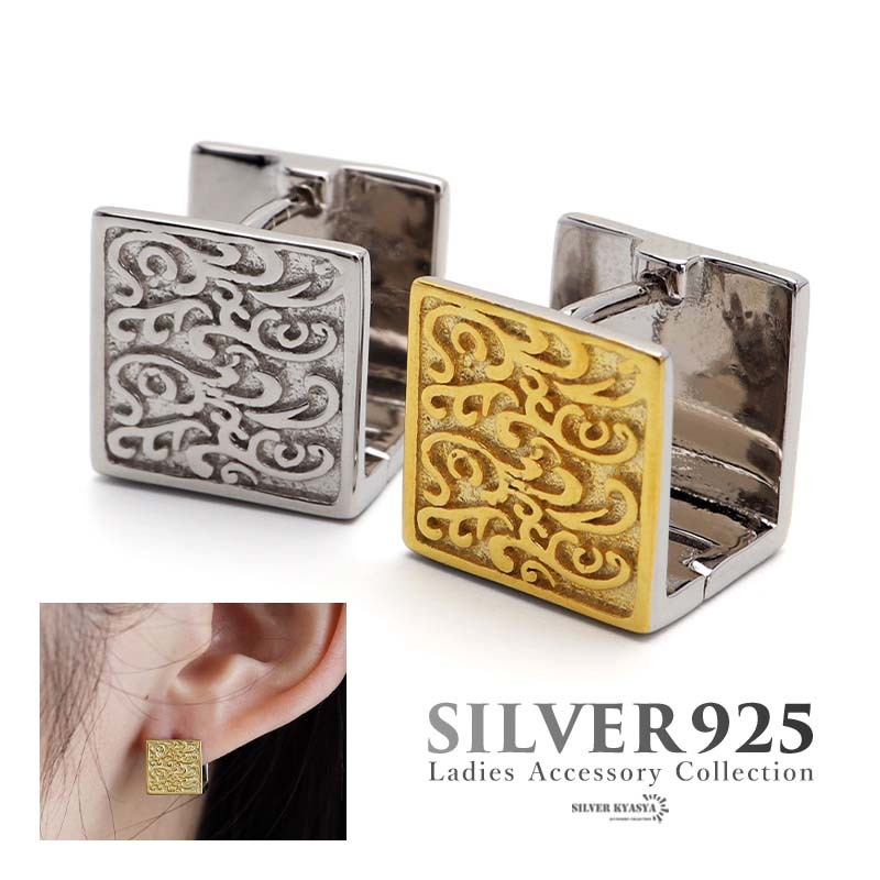 商品概要 | ■ITEM DESIGN スクエアなフォルムに唐草模様をデザインしたちょっと大きめフープピアス。こなれ感のあるデザインにぴったりのバイカラーがセンス◎ ■SILVER925素材 シルバー925は、銀含有率(純度)92.5%を示し、一般的に純銀として扱われています。サビや劣化等がほとんどなく金属アレルギーも出にくいとされており、アクセサリーとして重宝される金属です。 |