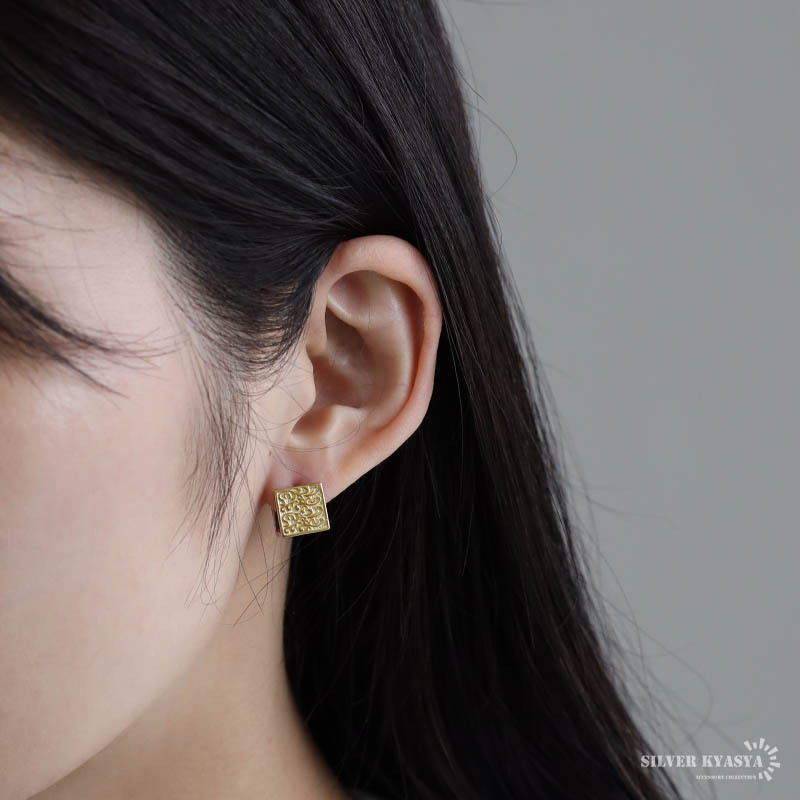 サイズ | 縦横:10mm×10mm 厚み:約1mm ピアスポスト:18g(1mm) ポストの長さ:約6mm |