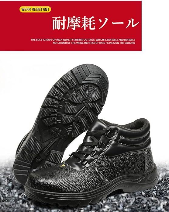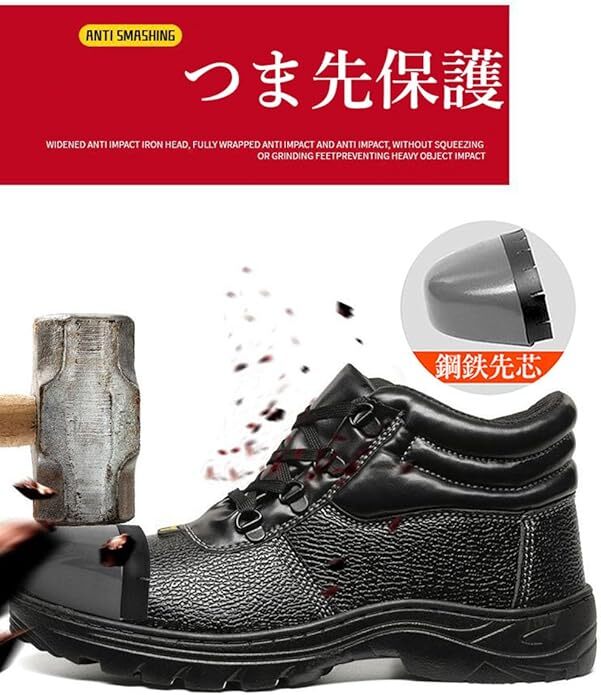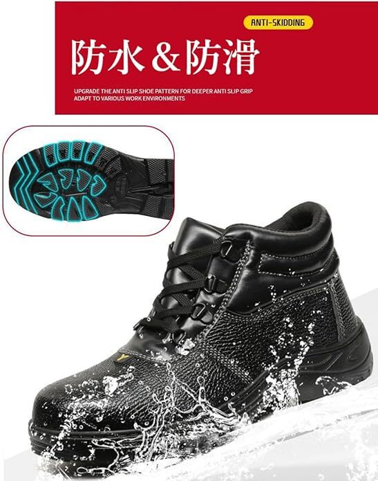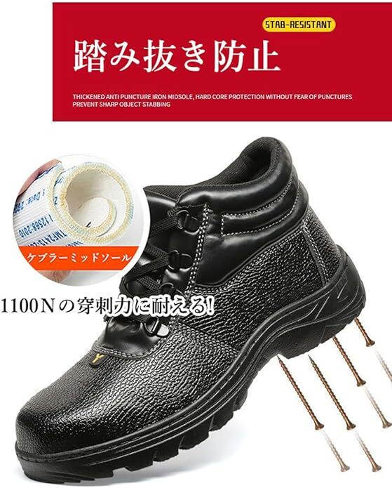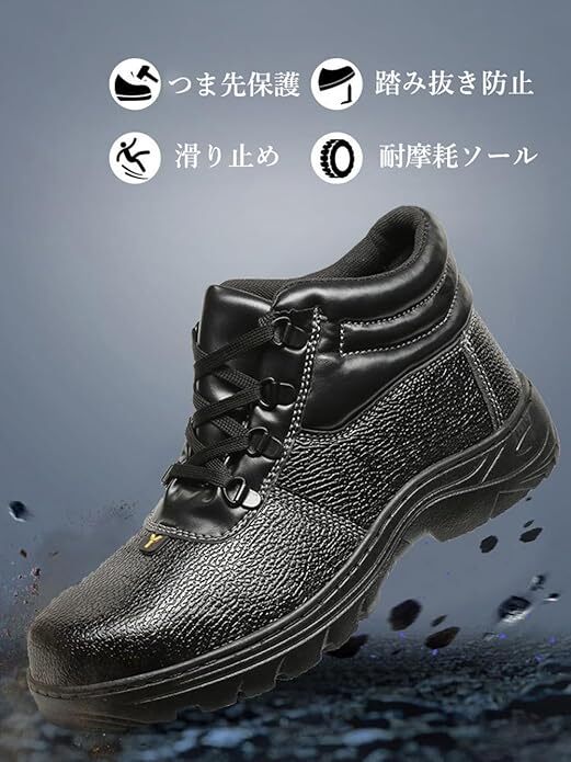 安全靴 作業靴 ハイカット 防水 軽量 革靴タイプ 黒 鋼製先芯入り 防滑 釘踏み抜き防止 耐摩耗 サイズ:26.5cm