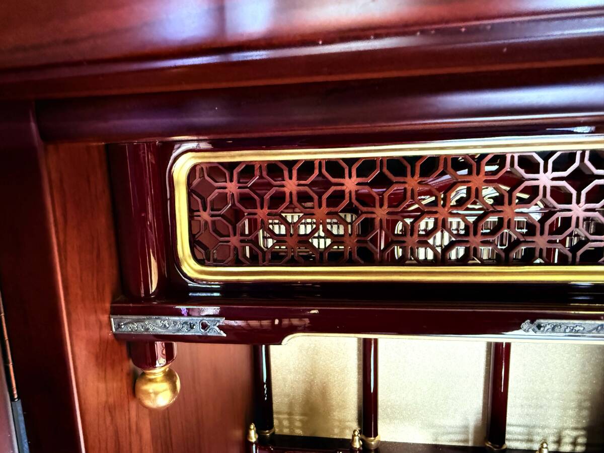 まごころ堂 展示特価品 家具調仏壇 組子欄間 高136㎝ 幅46㎝ 奥43㎝ 木地を仕入れて中はオリジナルで金仏壇仕様で作りました。 定価75万円 |