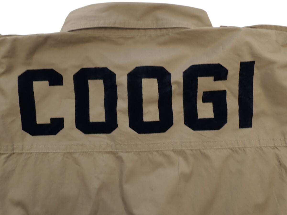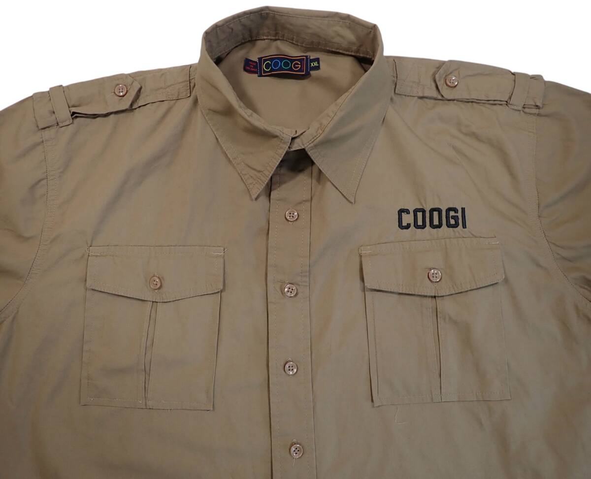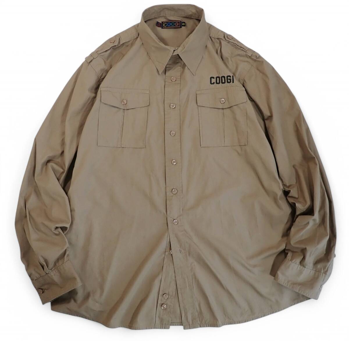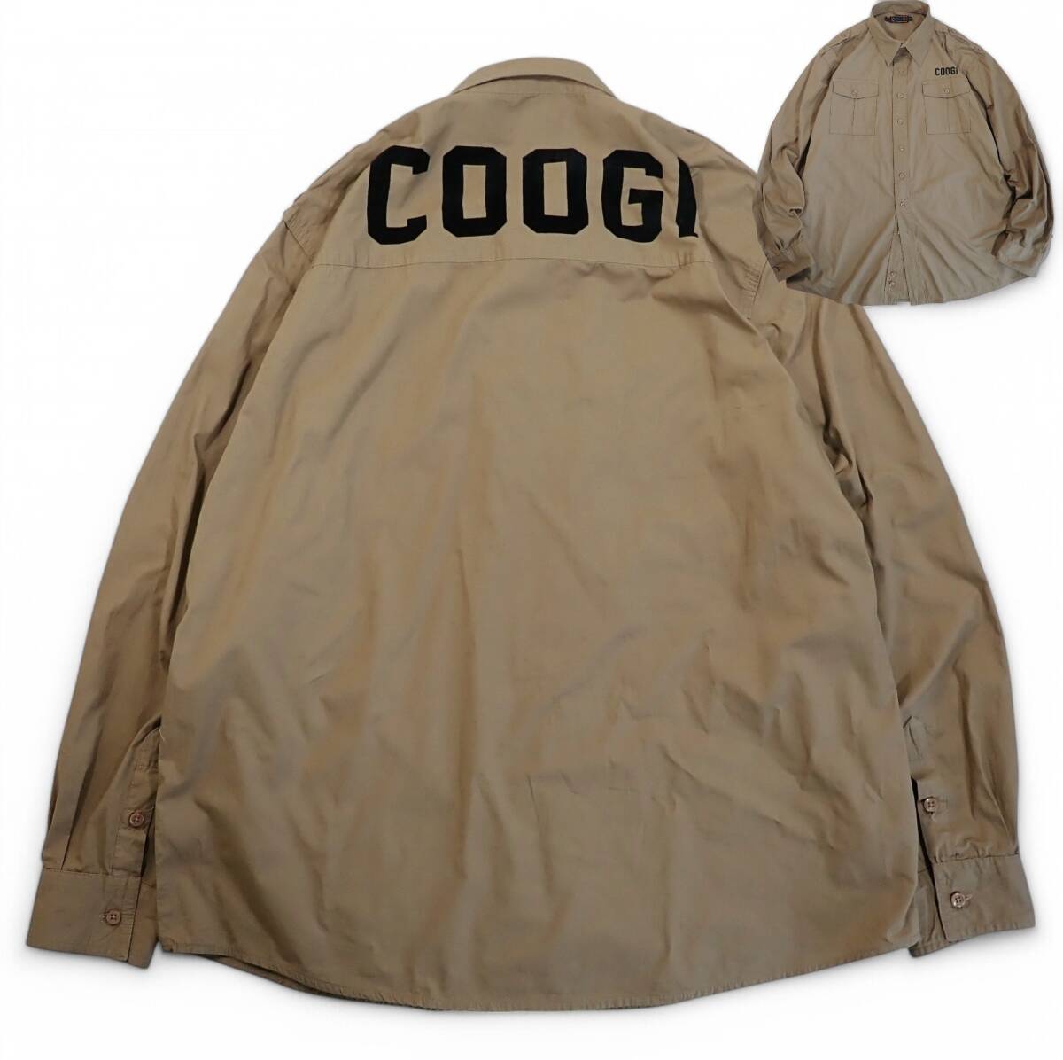 6398/COOGI 長袖シャツ XXL●ロゴ刺繍 フロッキープリント●洗濯プレス済●ネコポス可●エポーレット付き クージー 古着