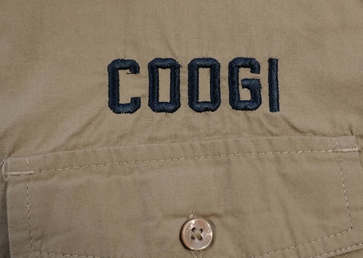 備考 COOGIの刺繍、フロッキープリントプリント入りのエポーレット付き薄手、長袖シャツです。 クリーニング、プレス済