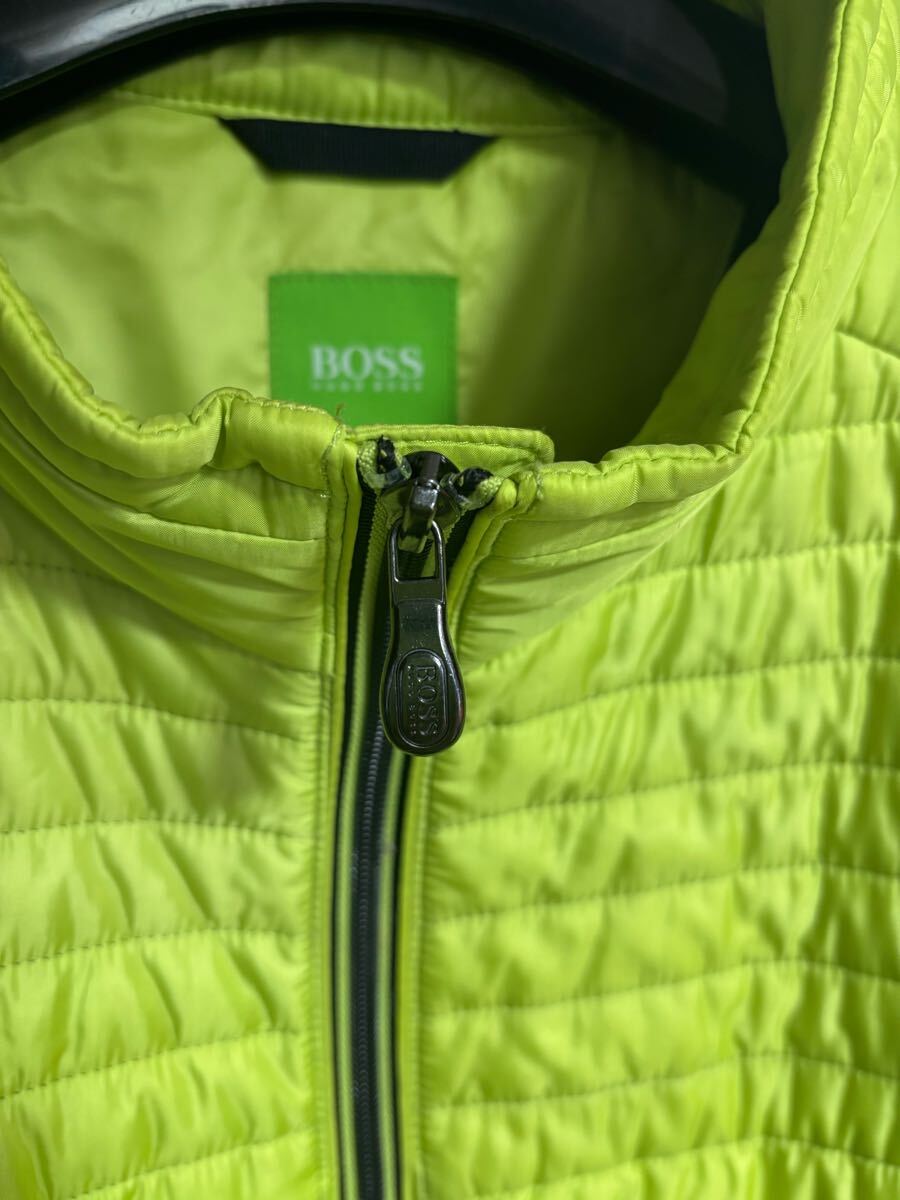 ヒューゴボスの中綿入りジャケットです。サイズ54表記で平置き脇下身幅63、着丈70肩幅51袖丈67センチ位です。きれいな状態ですよ。