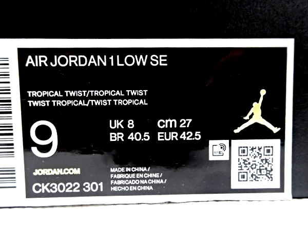 9(27cm) 国内正規品 新品【NIKE AIR JORDAN 1 LOW SE TROPICAL TWIST CK3022-301 ナイキ エア ジョーダン 1 ロー SE トロピカル ツイスト】