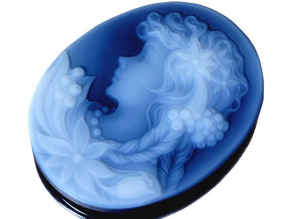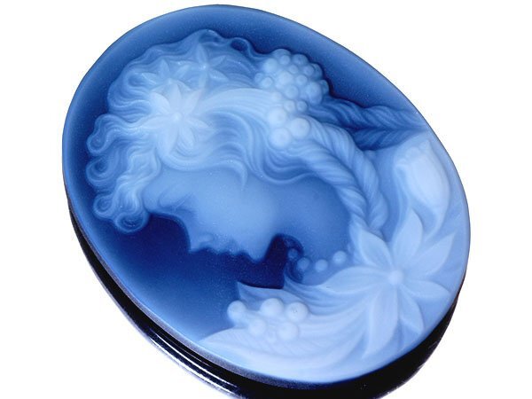 綺麗な貴婦人を繊細に彫刻で演出した、魅力的な高級ブルーストーンカメオルースです!