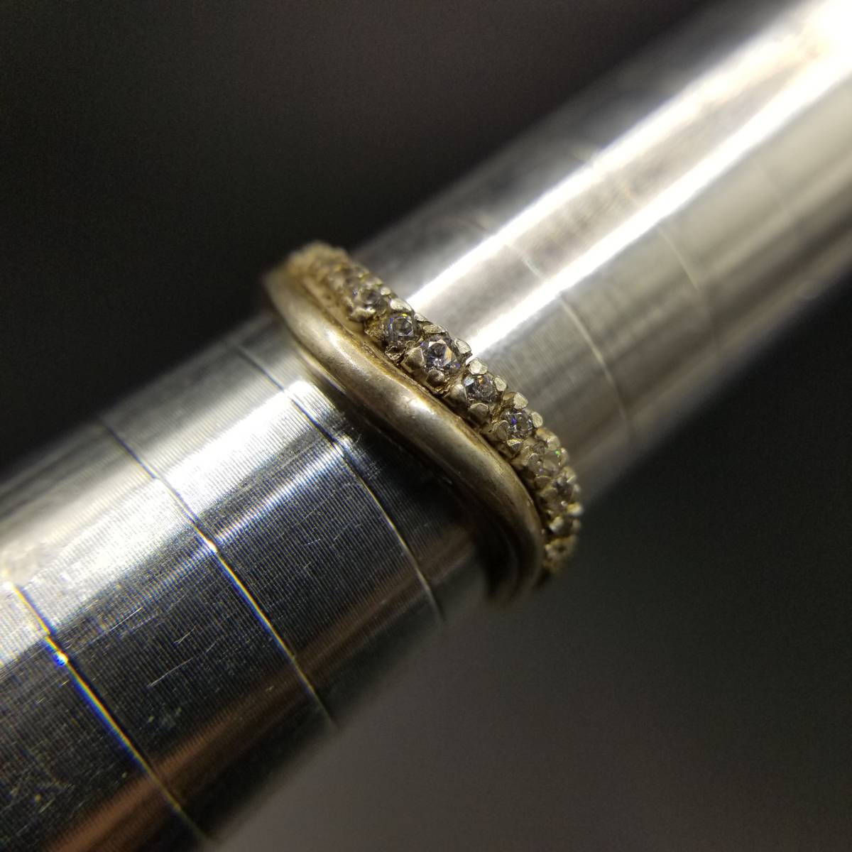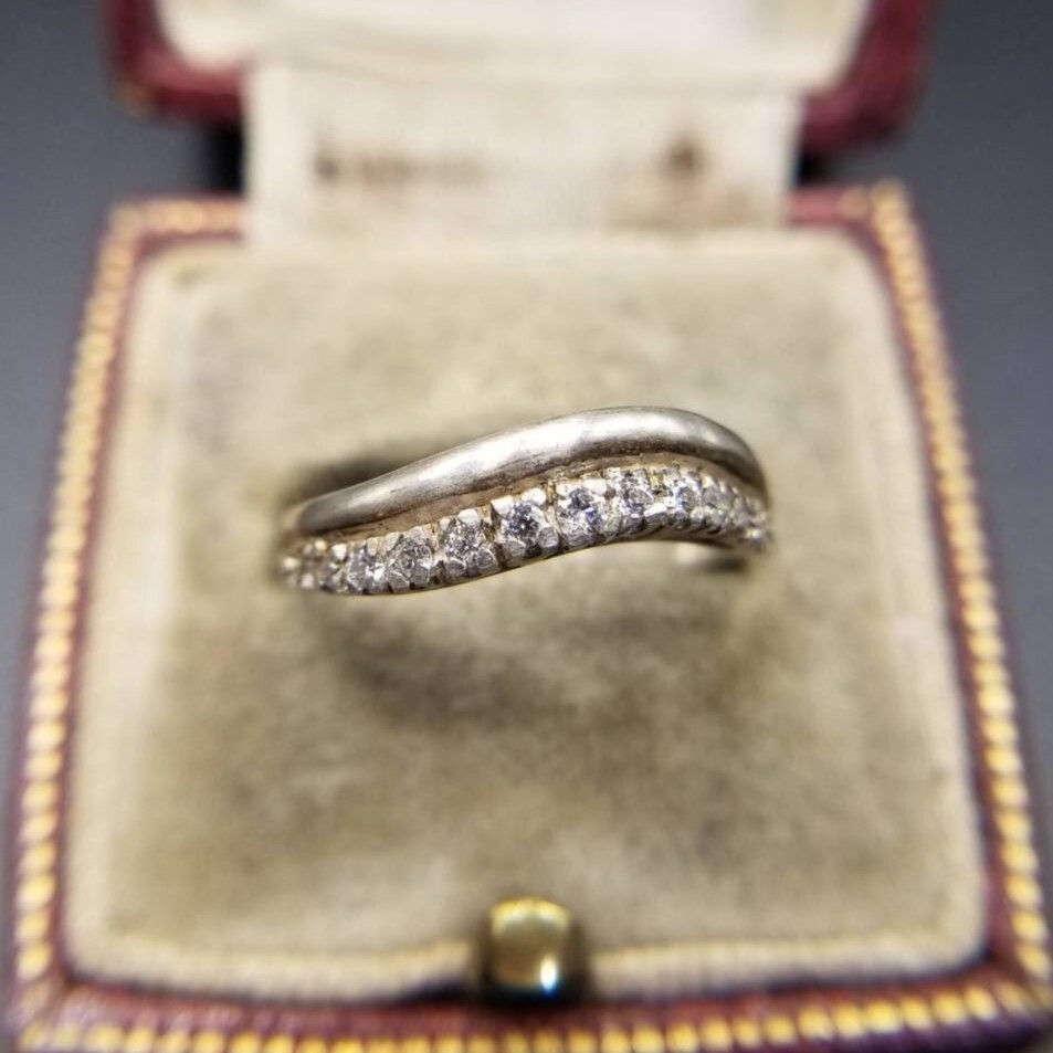 エレガント キュービックジルコニア ウェーブ 925 シルバー ヴィンテージ リング 銀 指輪 レトロ 上品 シンプル Y5-D