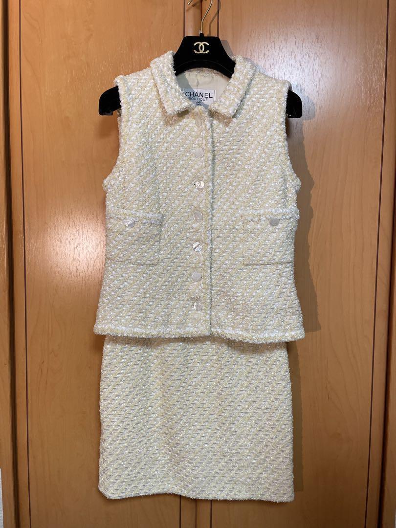 シャネル CHANEL ビンテージ ツイード ベスト スカート セットアップ