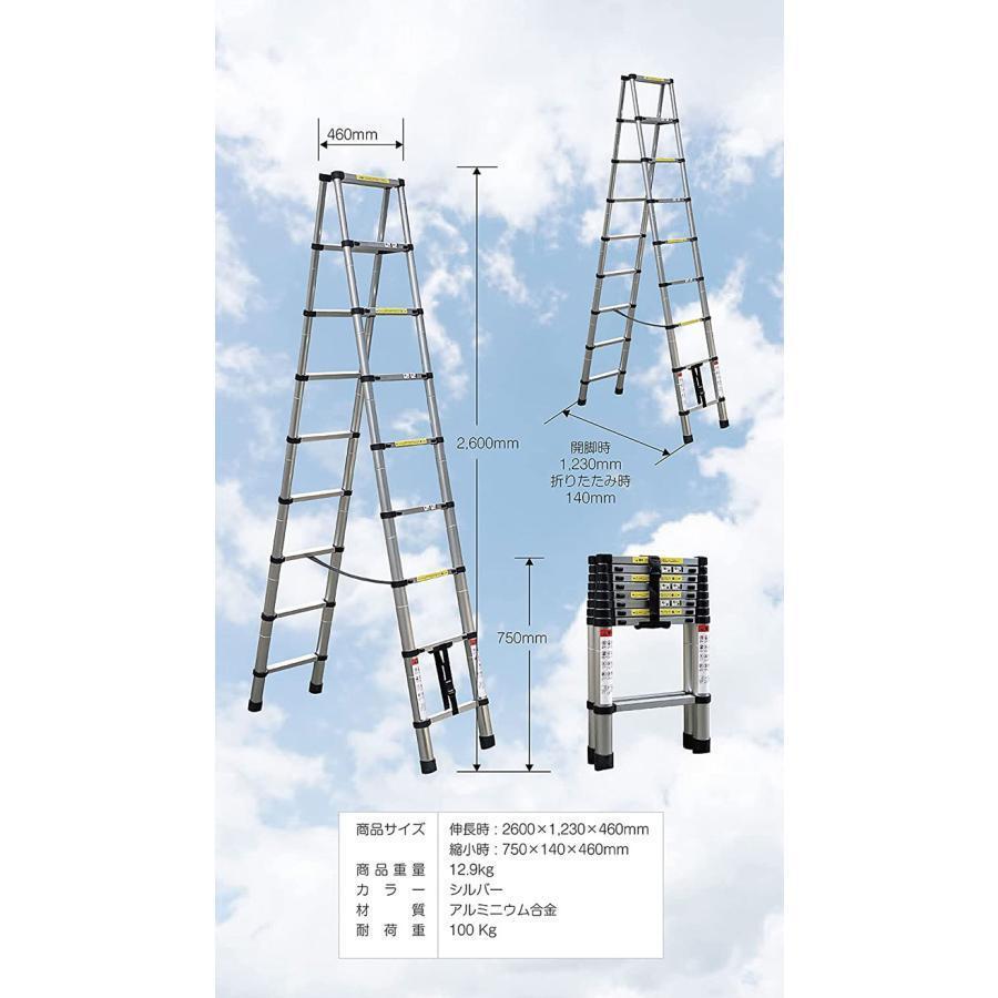 脚立 足場 踏み台 踏台 ハシゴ 梯子 はしご 安全ロック アルミ製 コンパクト 軽量 耐荷重100kg スライド式 折り畳み