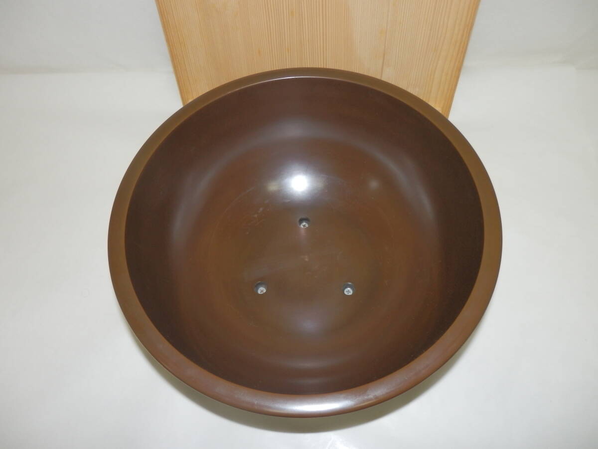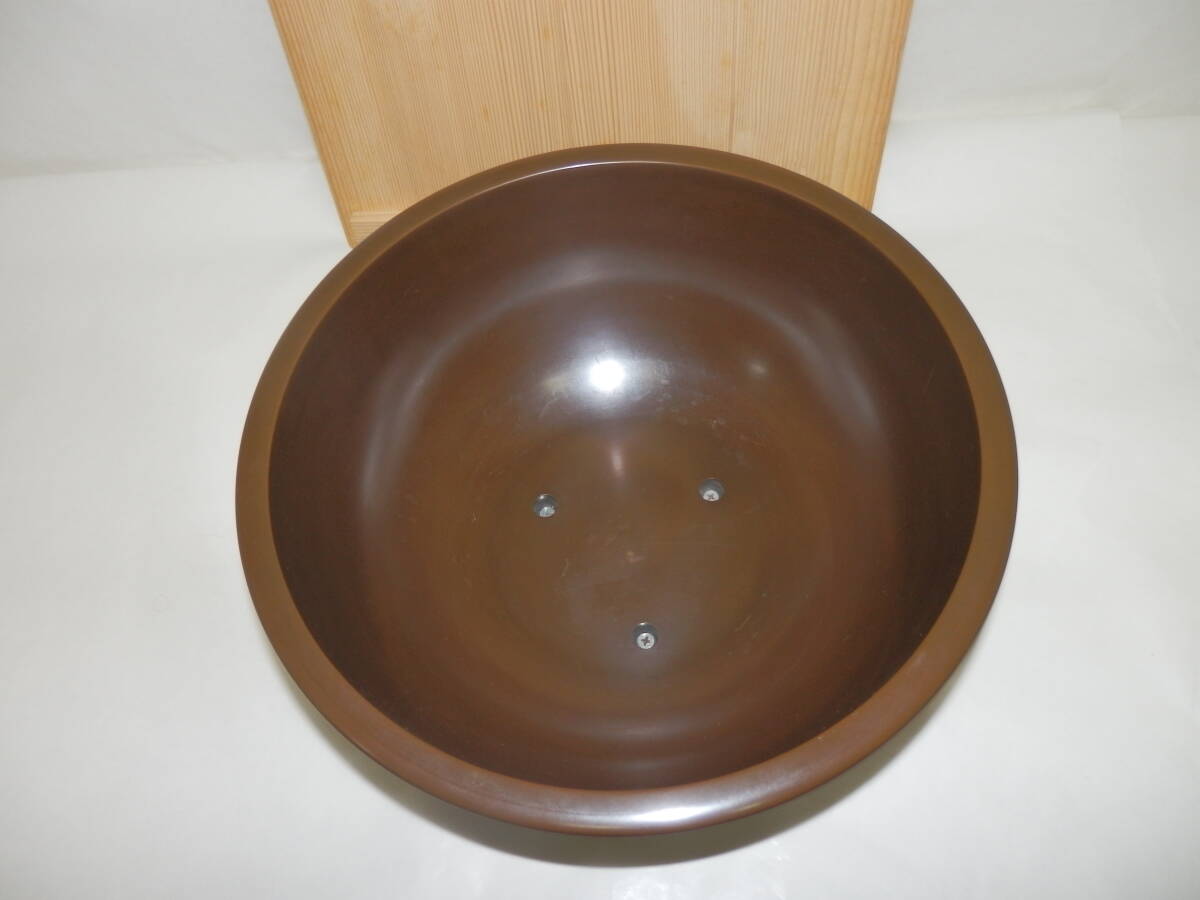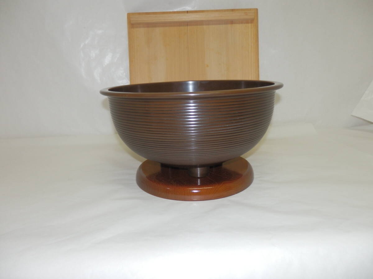 「中古品・茶道具」高岡の金工師の一ノ瀬宗辰さんの唐銅製の瓶掛です。裏千家の淡々宗匠の御好写です。径約31.5cm 高さ約17.3cm 底に宗辰の小判の刻印有。 共箱「ヤケ、シミ等有」。 どうぞ宜しく。