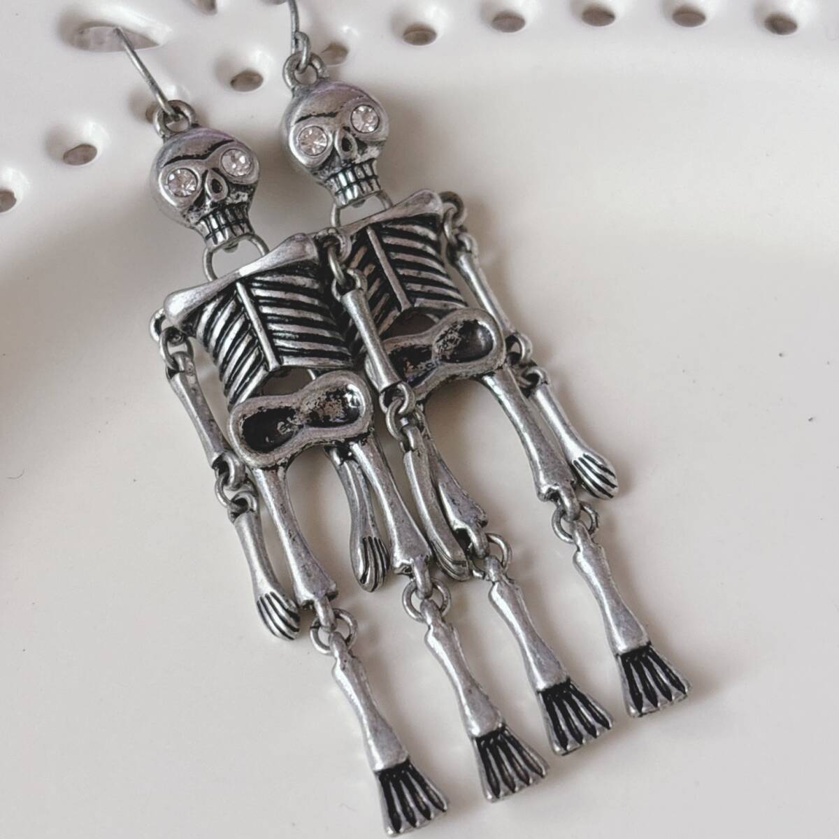 ピアス ロングピアス 髑髏 スカル 骸骨 ゴシック ガラス玉 ゆらゆら シルバー 美品☆Vintage jewelry accessories R0286