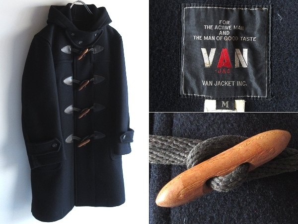 希少 70sビンテージ VAN JAC. ヴァンヂャケット チンスト付 ウッドトグル ウールメルトン ダッフルコート M ネイビー 紺 当時物 オリジナル