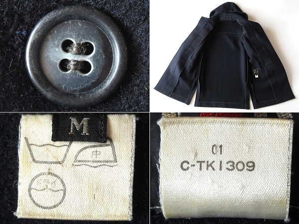 年代物になりますので、タグに汚れ・トグルのレザーパーツ部分に細かな擦れ等御座いますが(※画像参照)、着用に差し支えるようなダメージや目立った汚れは見受けられませんので、これからご使用して頂くのに十分良好な状態です。(※ヴィンテージ品になりますので、神経質な方や完品をお求めの方はご入札をお控え下さいますようお願い致します。)
