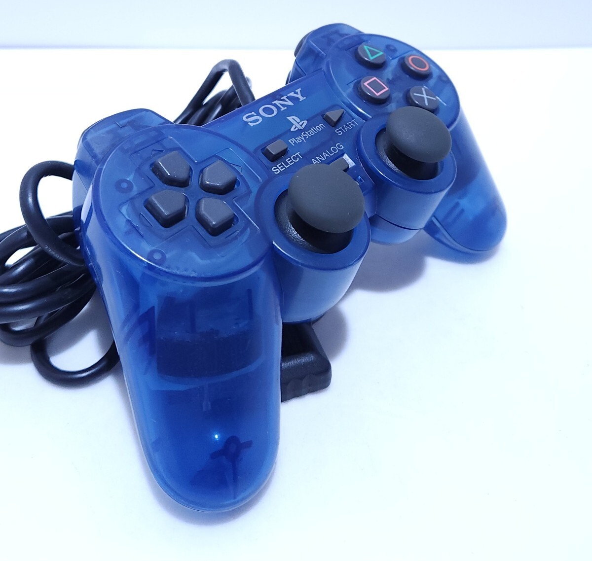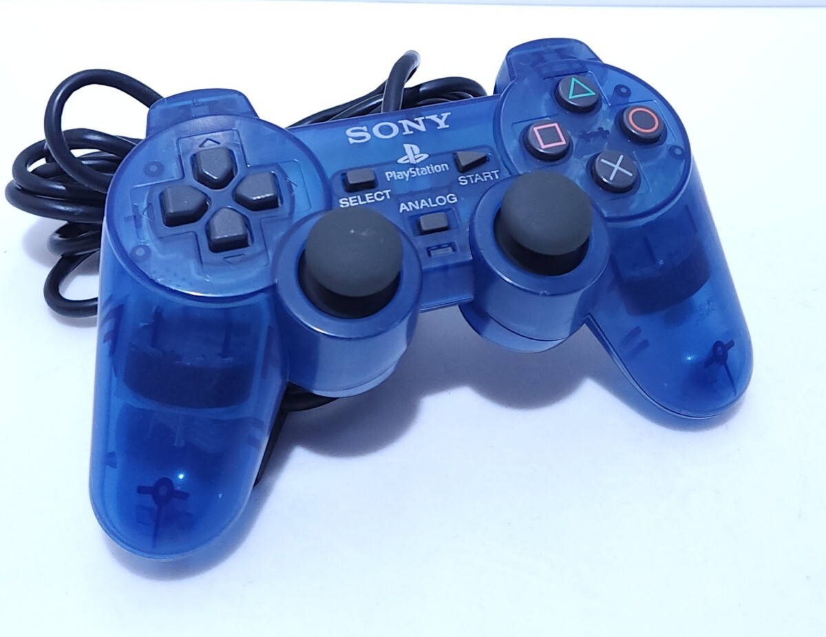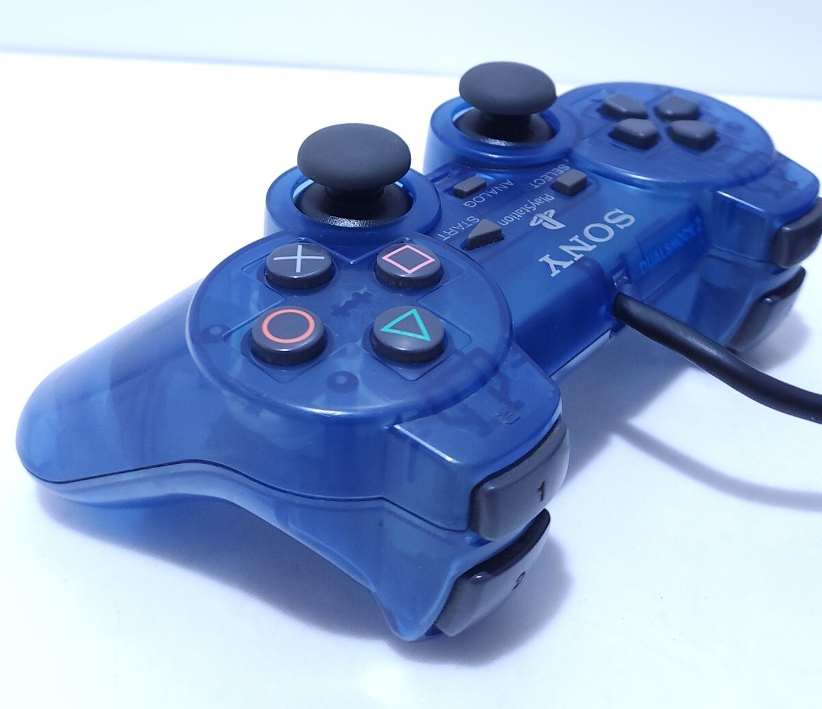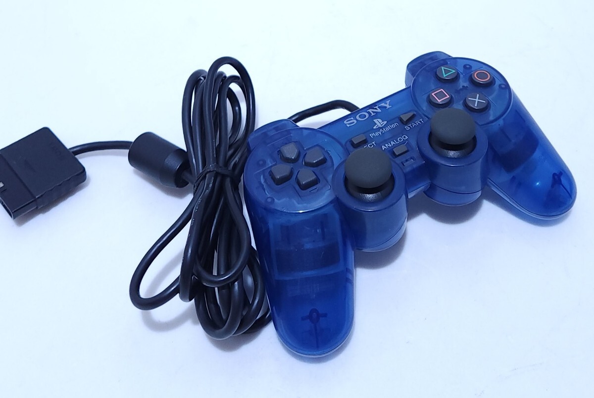 美品/動作品 PS2コントローラ ソニー純正 プレイステーションDUALSHOCK2オーシャンブルーエディション プレステSCPH-10010動作確認済(E-23)