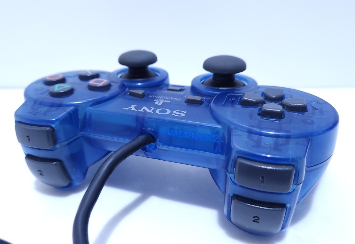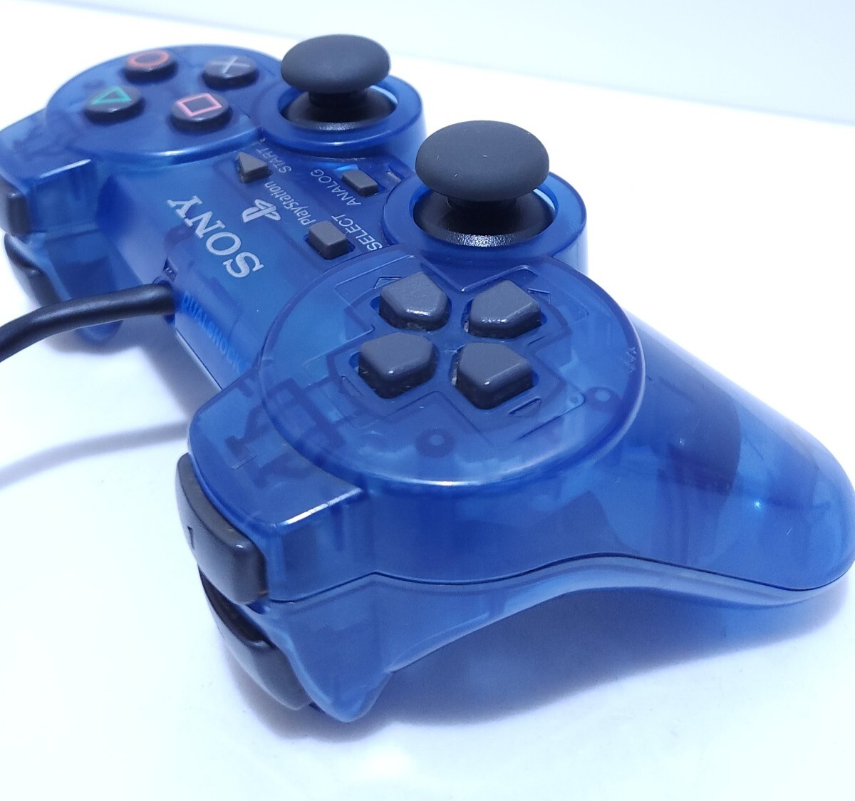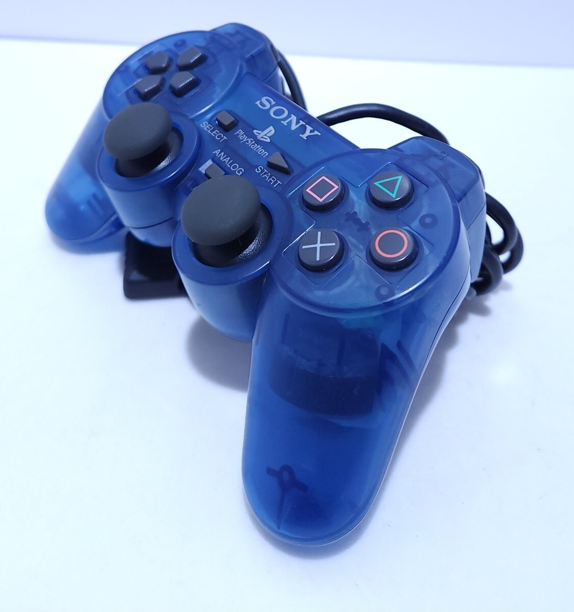 美品/動作品 PS2コントローラ ソニー純正 プレイステーションDUALSHOCK2オーシャンブルーエディション プレステSCPH-10010動作確認済(E-23)