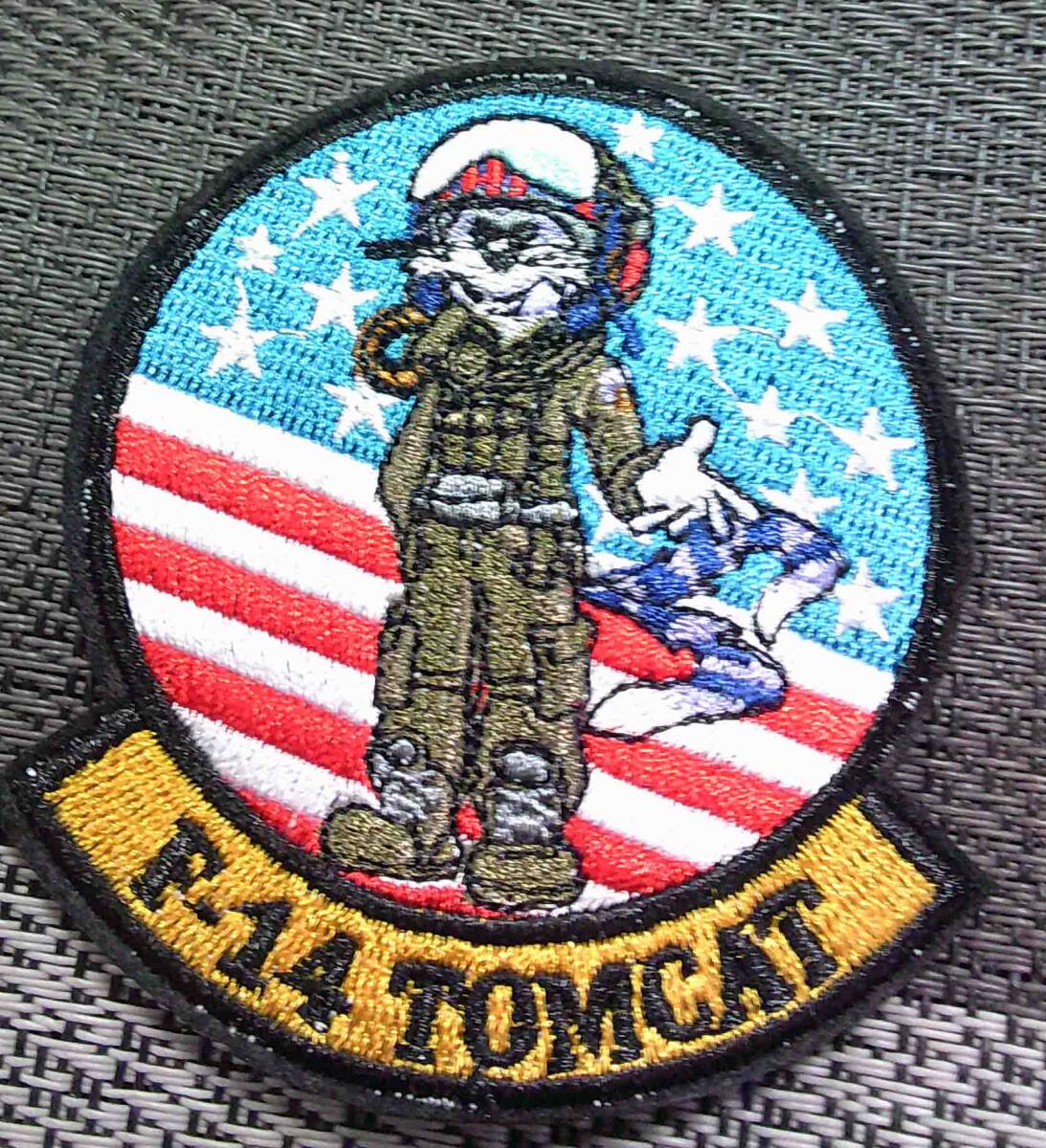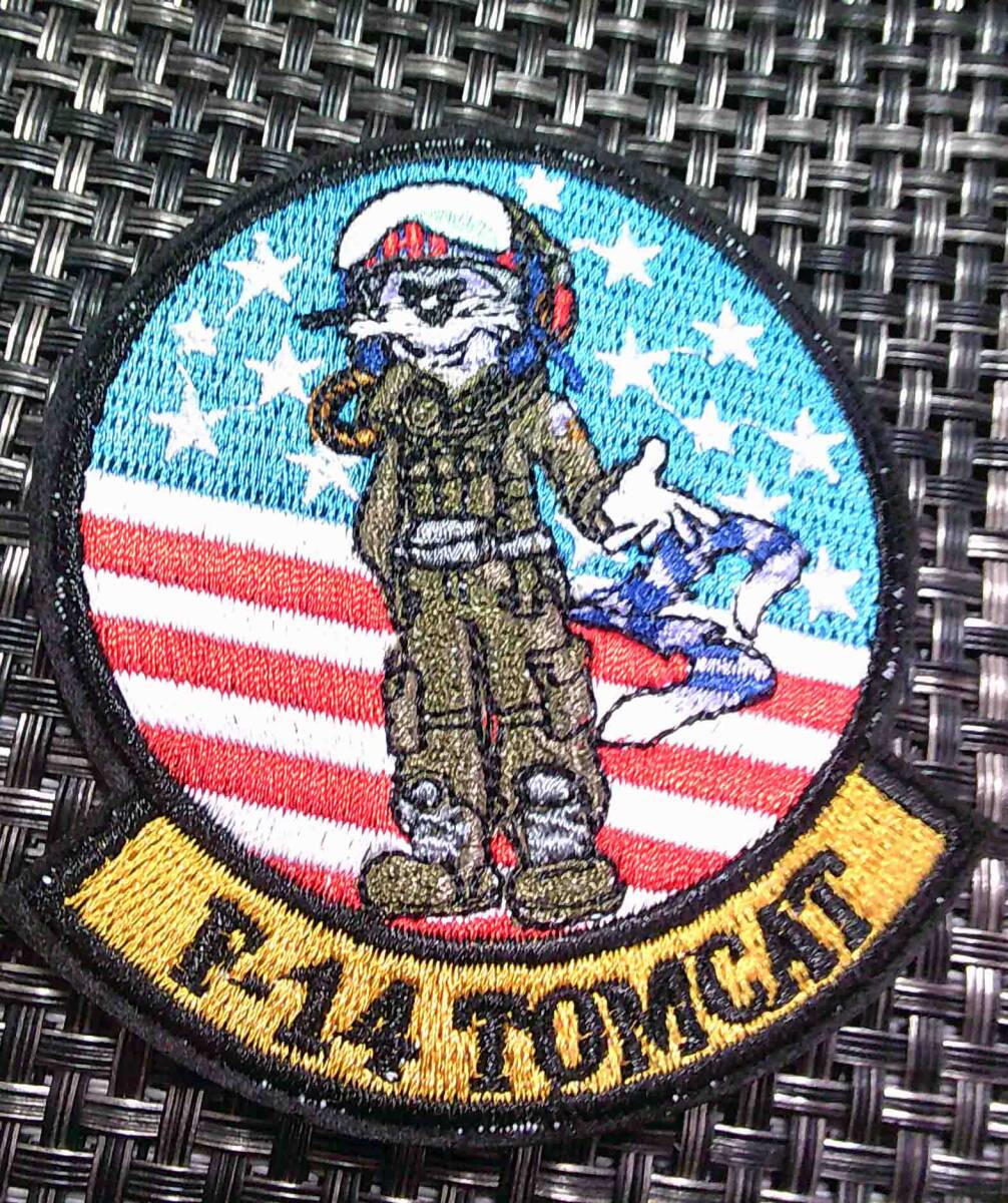 《星条旗F14萌灰猫戦闘飛行士》F-14星条旗《激渋》アメリカ 雄猫 トムキャット ガンマン TOMCAT刺繍ワッペン◇サバゲー・ミリタリー◎
