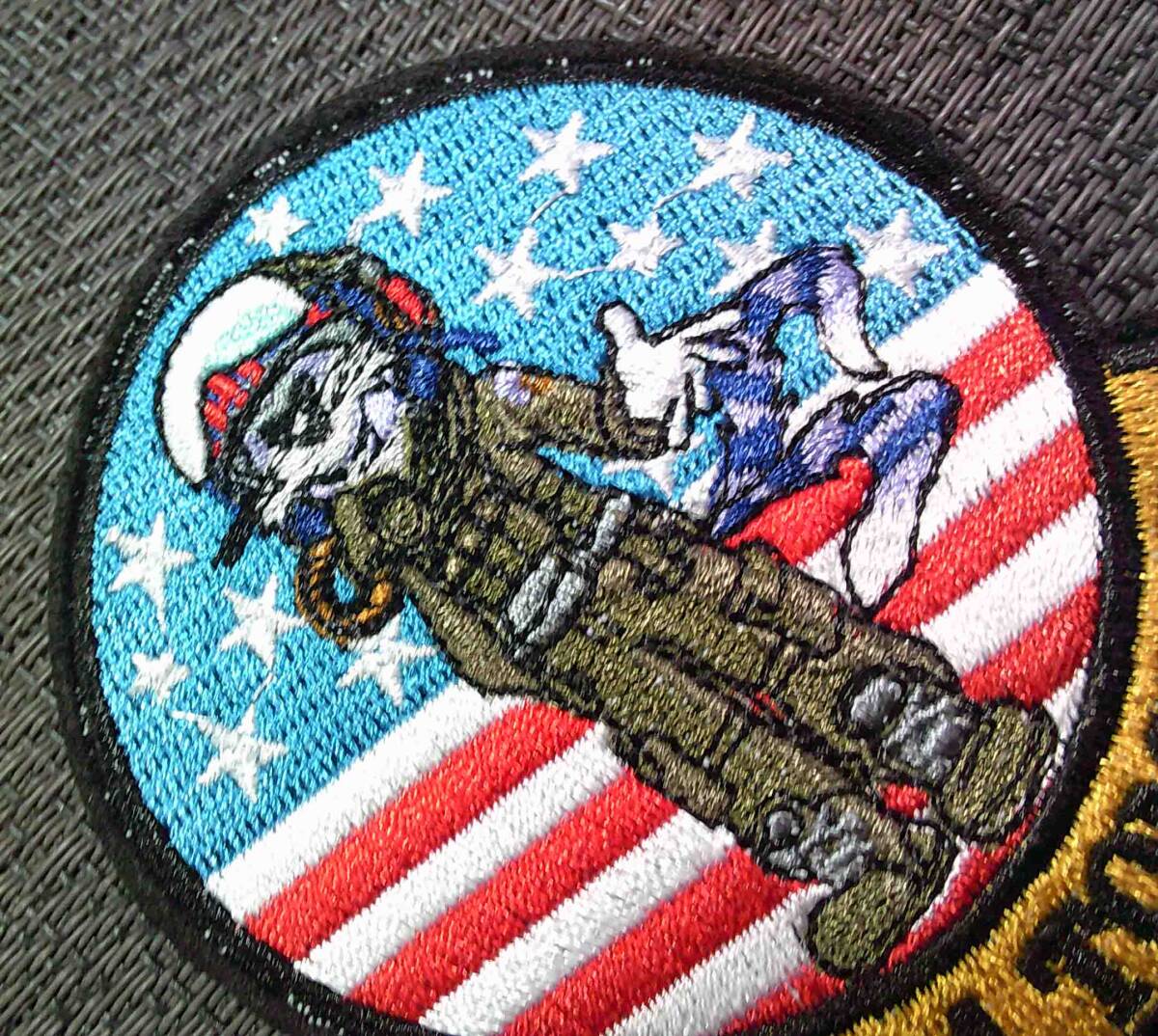 例えば無地でシンプルなスカジャン フライトジャケット、ライダーズジャケット、スポーツジャージ、作業着にこちらの刺繍ワッペンを取り付ければ貴殿のオリジナルな『一張羅(1番のお気に入り衣類)』