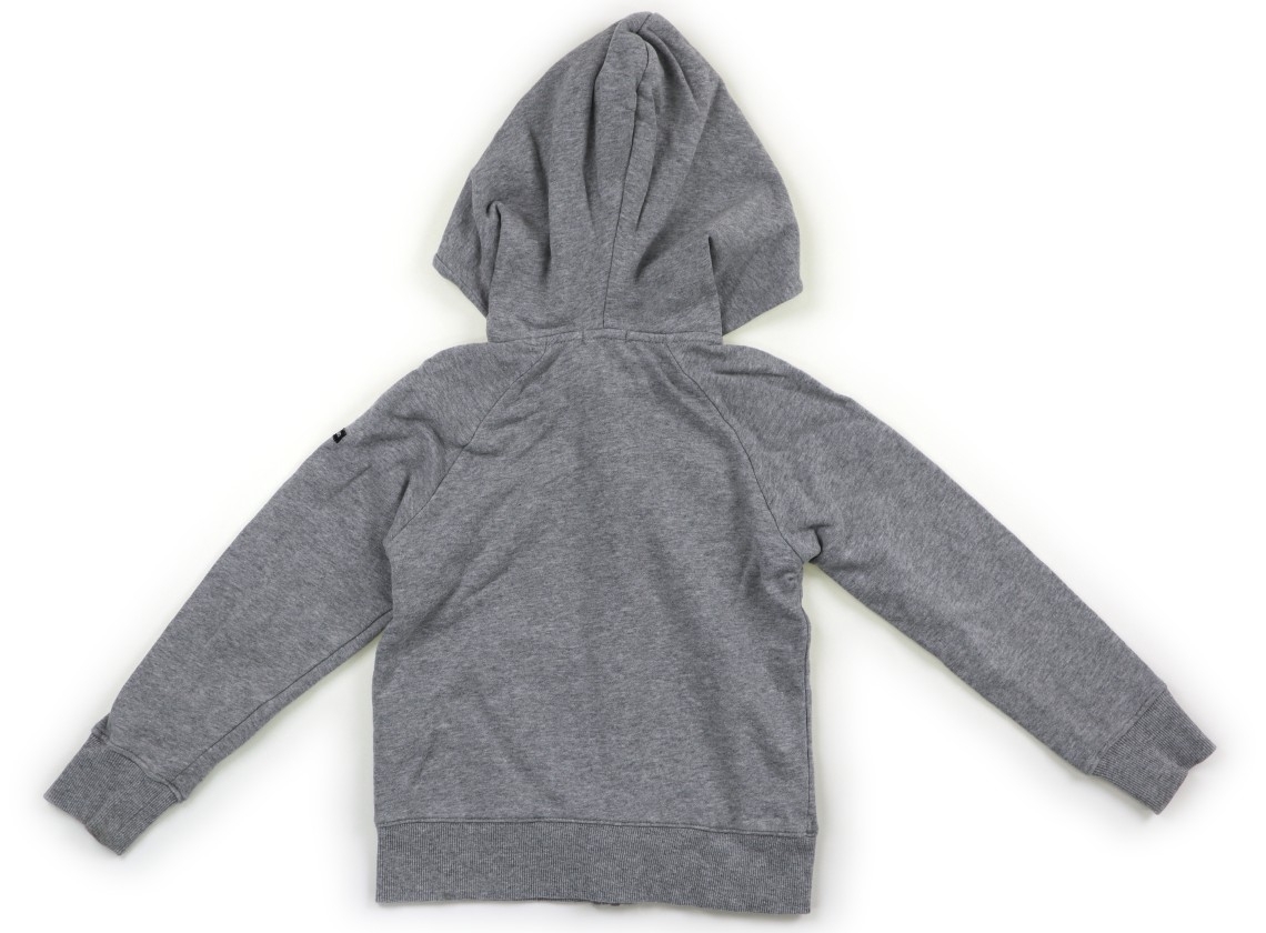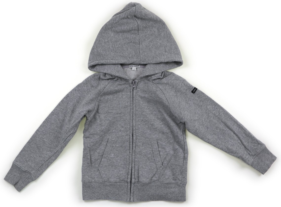 コットンスウェット素材。全体的に毛羽立ちあり。腹部に薄茶色い汚れあり。両袖口も薄茶色く汚れています。
