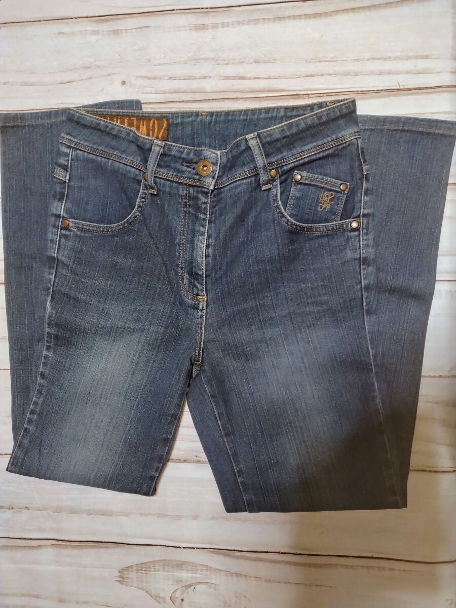 SOMTHINGストレートデニムパンツ ジーンズ ブルー レディース中古 サムシング