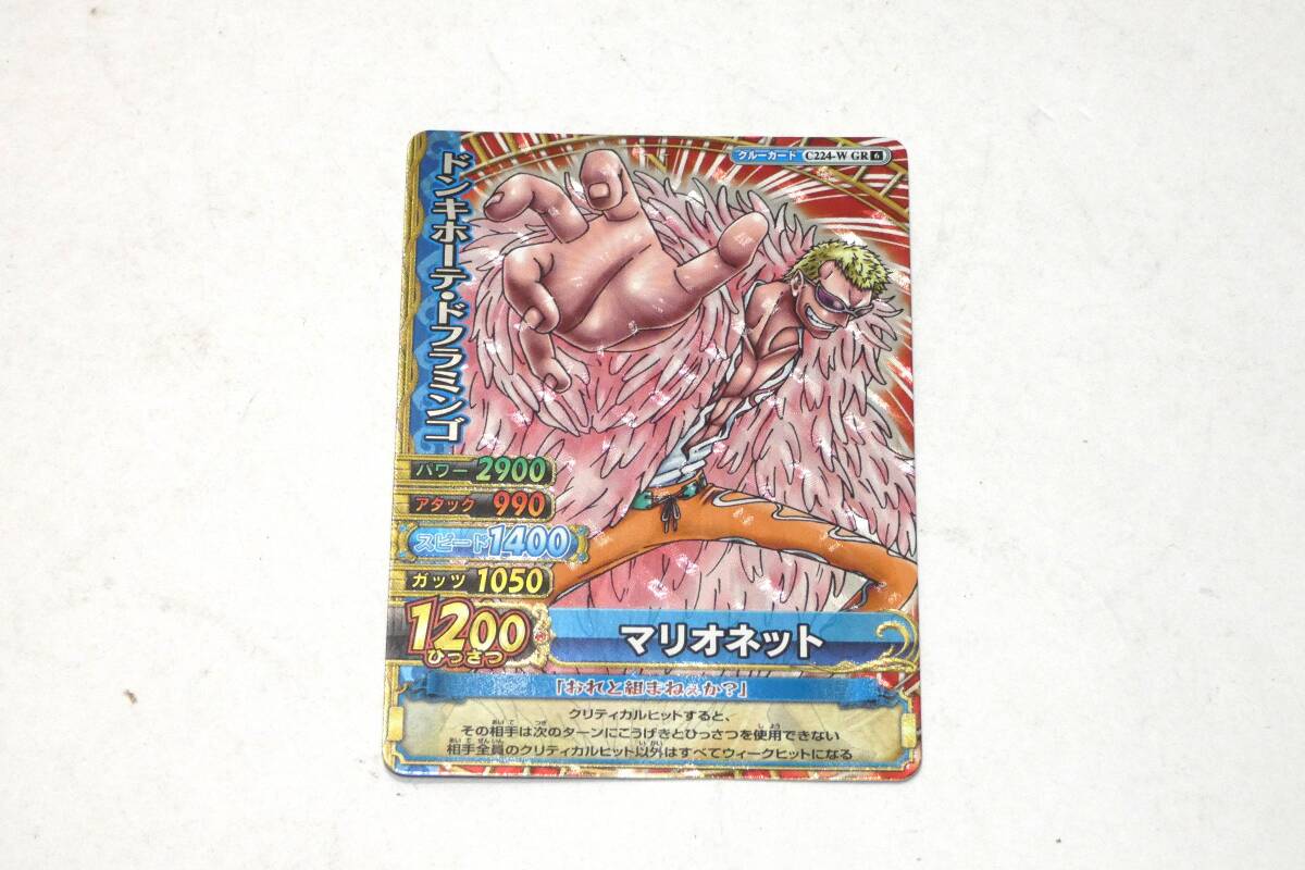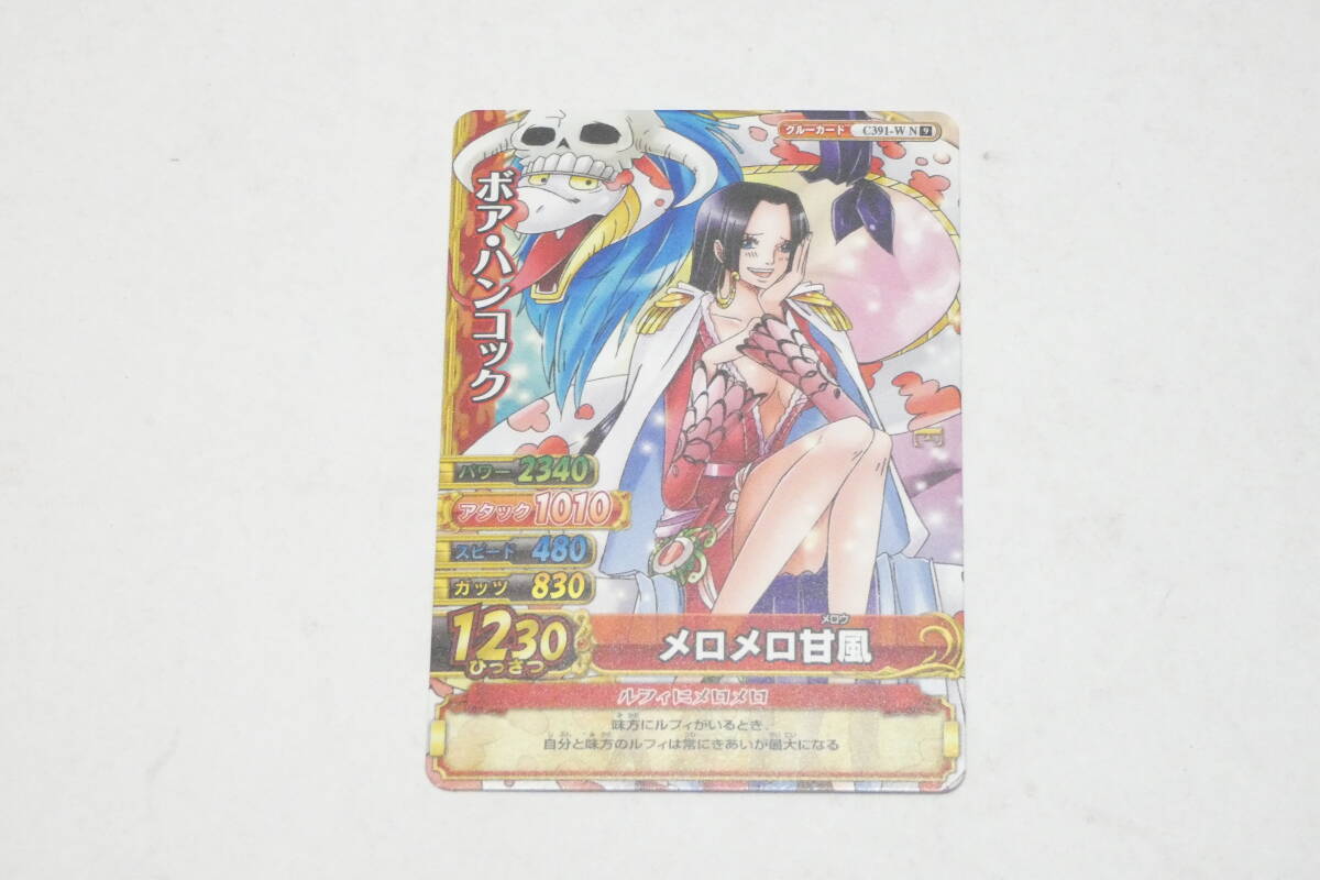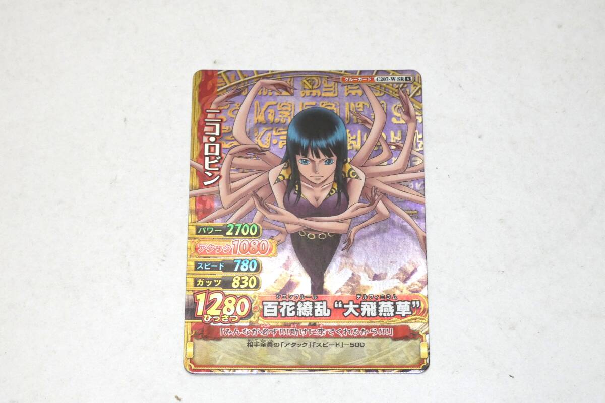 ニコ・ロビン SR C207 ドフラミンゴ GR C224 ボア・ハンコック C391 コレクションしてた方から譲り受けたものです。 スリーブ保管してたので、比較的状態良いと思いますが 神経質な方はご遠慮ください 中古品だとご理解の上ご入札をお願いいたします。 写真のものがすべてです。 ノークレーム、ノーリターンでお願いします。 ※他にも出品しています。ご覧下さい。 ※簡易梱包となります。 なるべく折れないように型紙に挟んで梱包しますが 素人梱包だとご了承していただける方のみ、ご入札ください。 ご落札後、梱包方法を細かく指定される 方が多く困惑しておりますので、上記内容(簡易梱包)を ご理解いただける方のみご入札ください。 | ||||