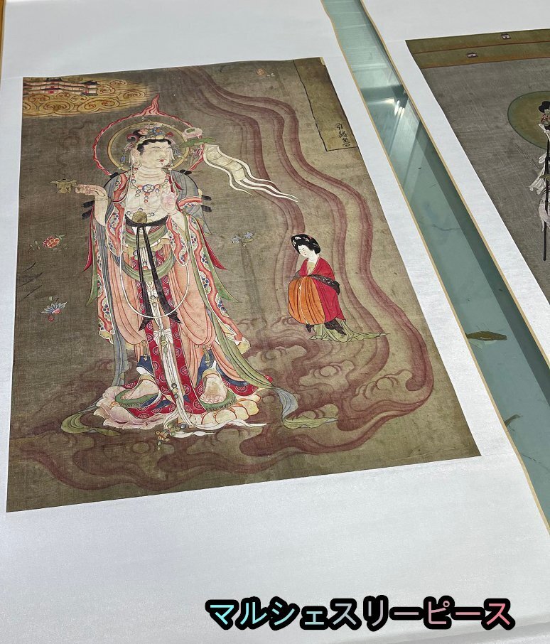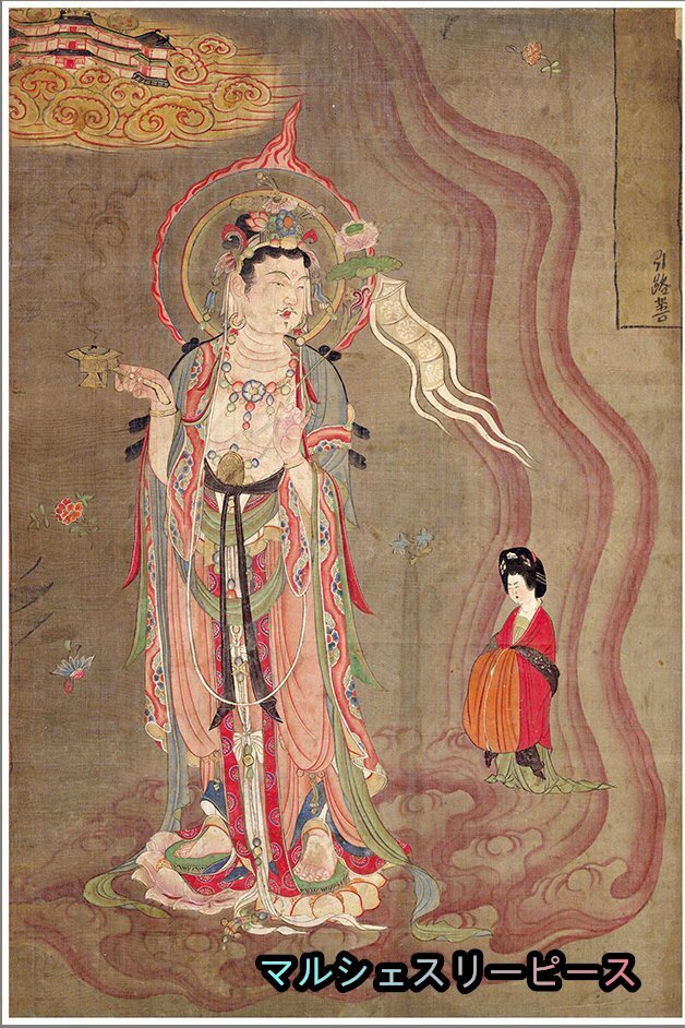 敦煌壁画 莫高窟 導路菩薩図 仏画 仏像 縦幅 菩薩仏像 供養仏像 絹布 絹本 東洋画 仏教美術 中堂画 掛け物 未表装Y38093