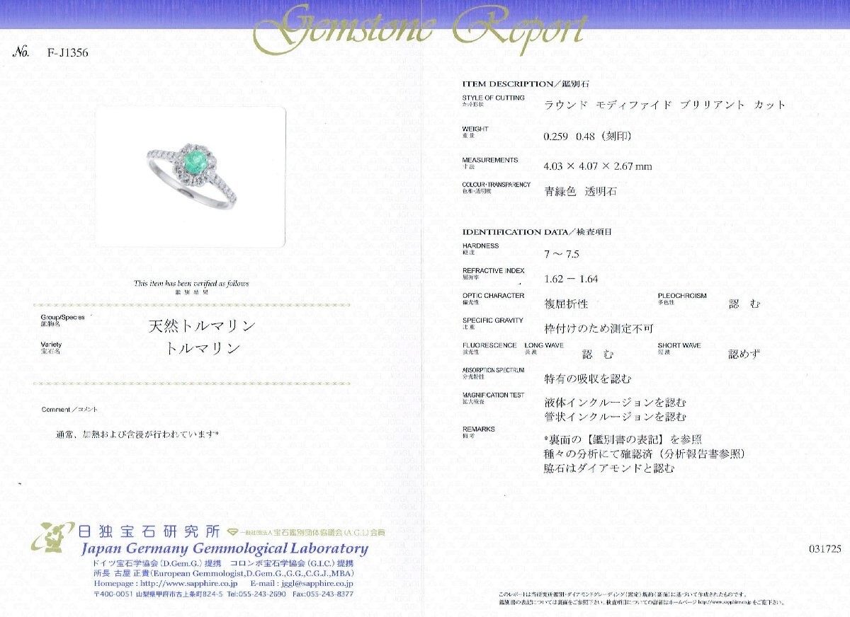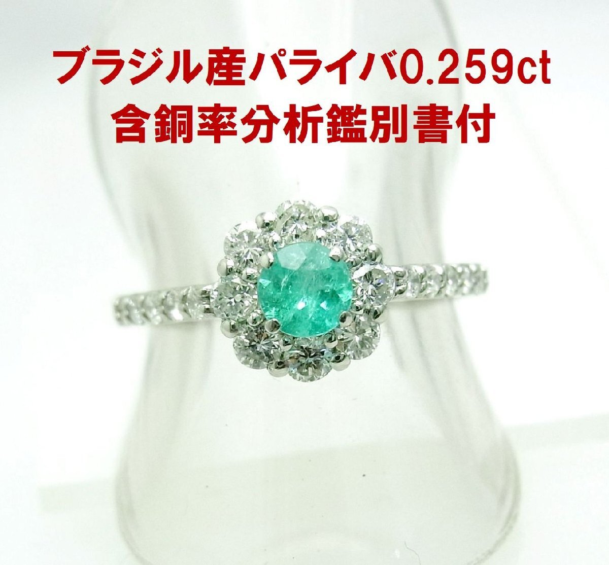 超激アツ商品 X線分析鑑別書付 ブラジル産0.259ct 天然パライバトルマリン ダイヤ プラチナリング 動画あり 送料込