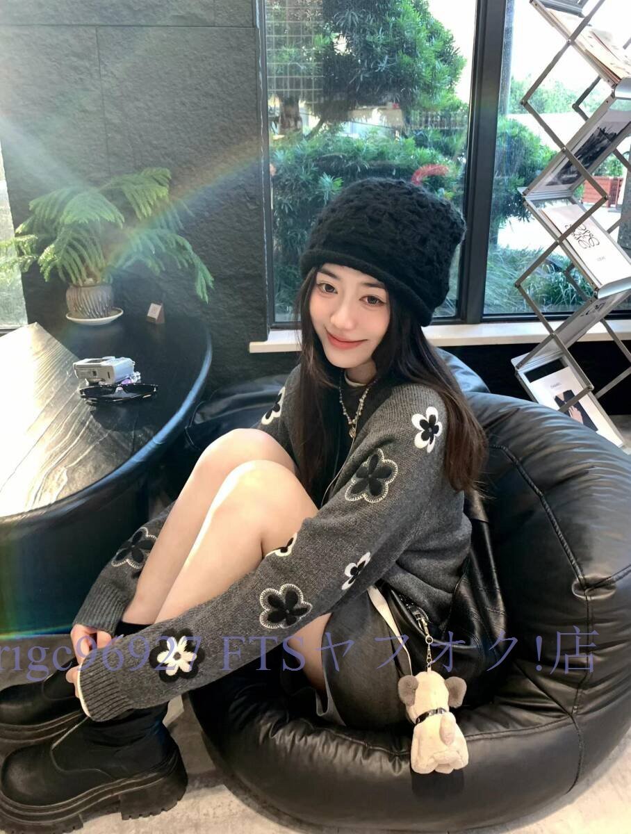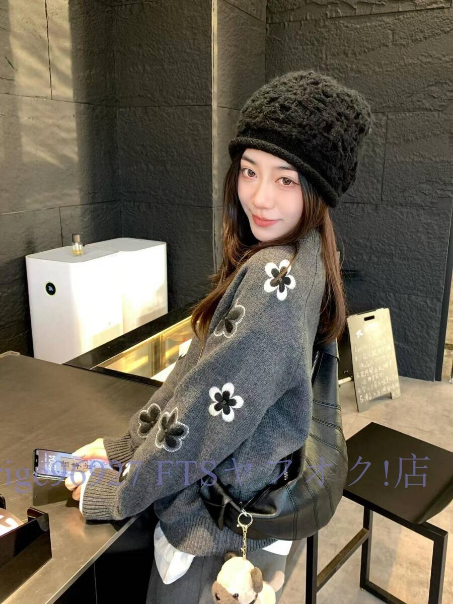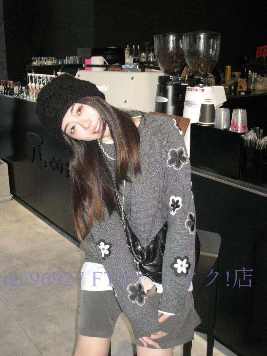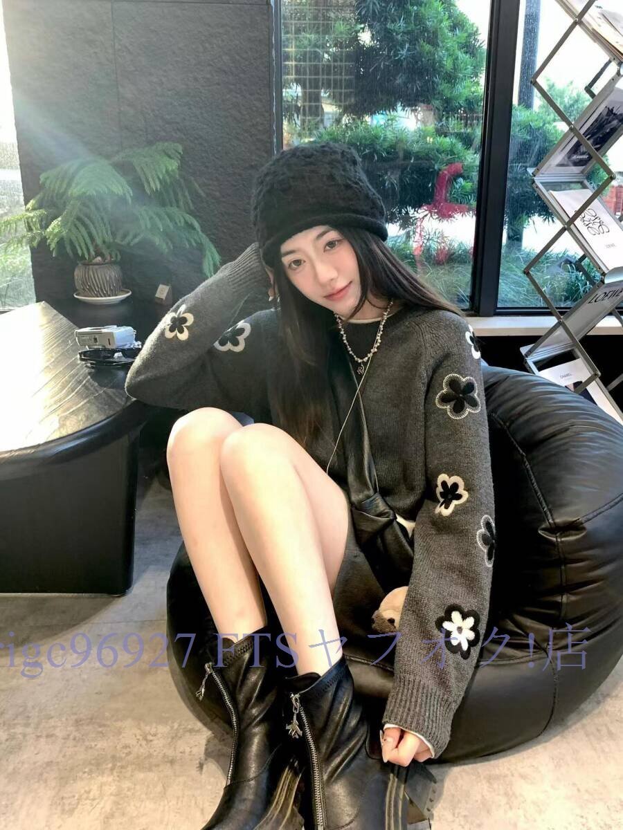 ★新品ニット セーター 大人可愛い 刺花柄 着映え おしゃれ レディース チュニック 暖かい グレーサイズ選択可