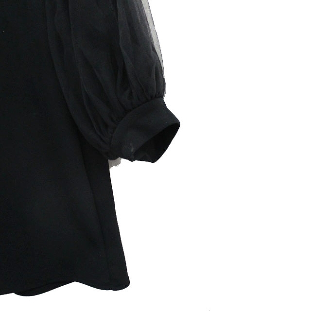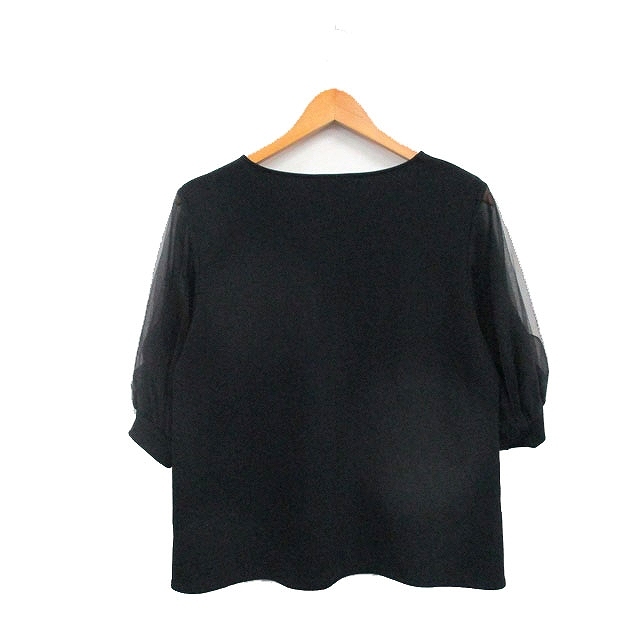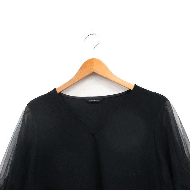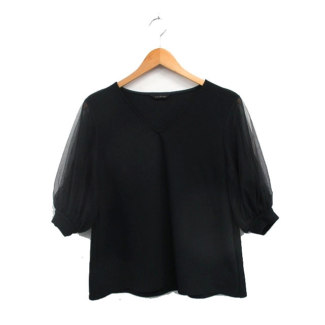 ミミ&ロジャー mimi&roger カットソー Tシャツ 七分袖 チュール袖 Vネック シンプル F ブラック 黒 /KT21 レディース