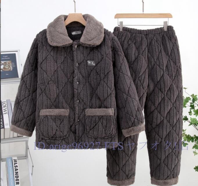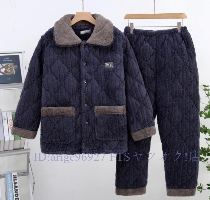 ★新品お父さんに 中綿入れ 部屋着 メンズ パジャマ ルームウエア モコモコ 寝間着 前開き 上下セット 防寒 冬物 厚手 50-90代