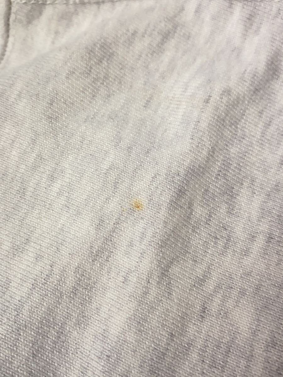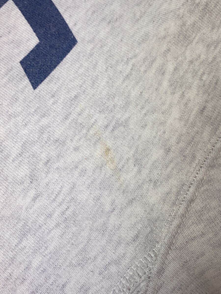 使用感のあるお品物です。前見頃・後身頃にシミが見受けられます。 |