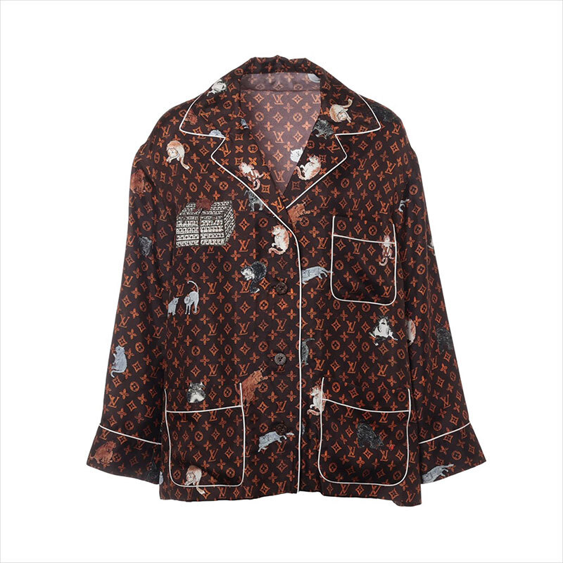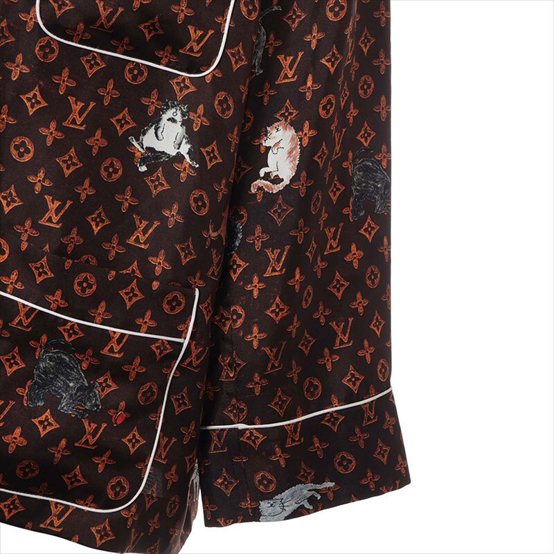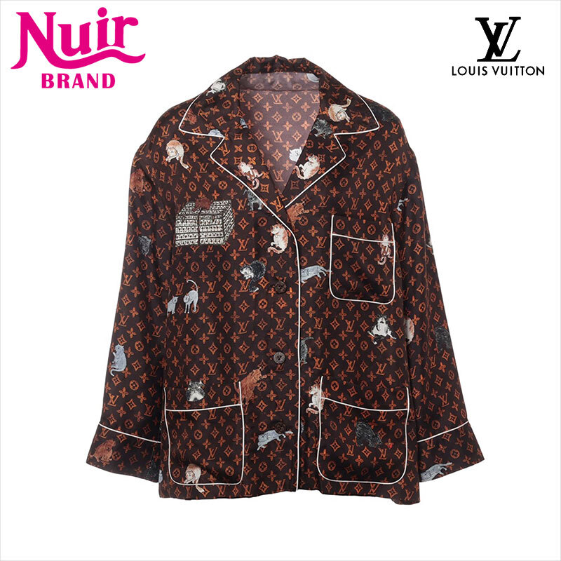 極美品 LOUIS VUITTON 19SS シルク RW191A キャットグラム 長袖シャツ ブラウン
