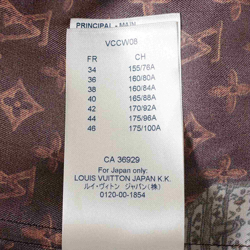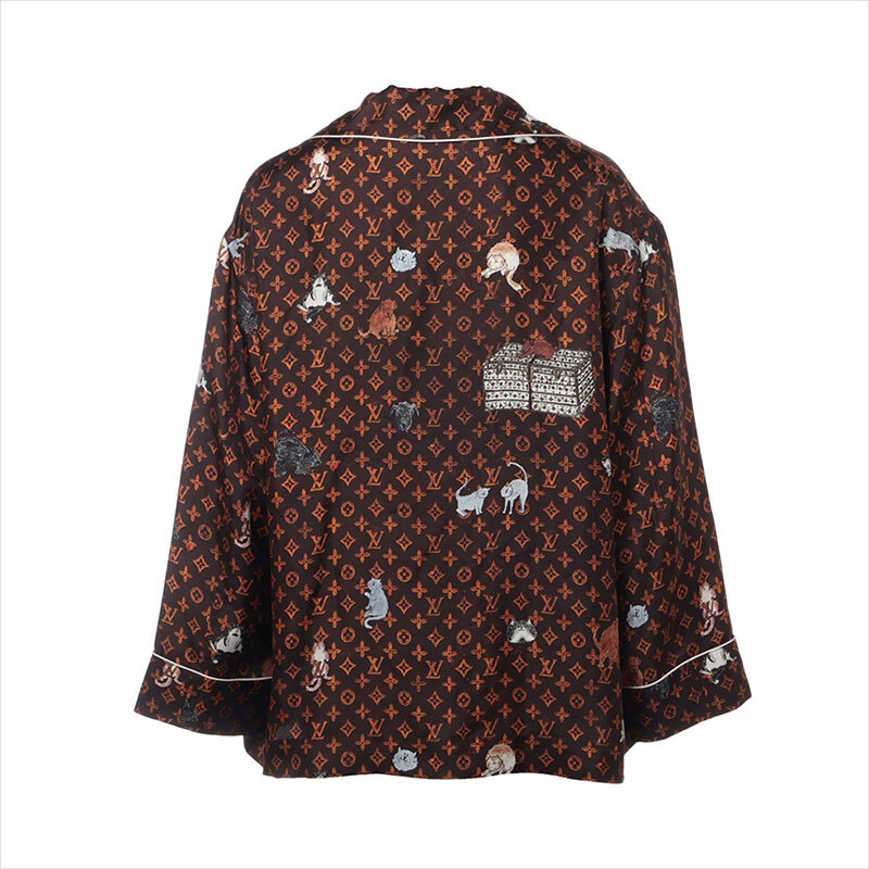 ルイ・ヴィトン LOUIS VUITTON 長袖シャツ 19SS シルク RW191A キャットグラム ブラウン