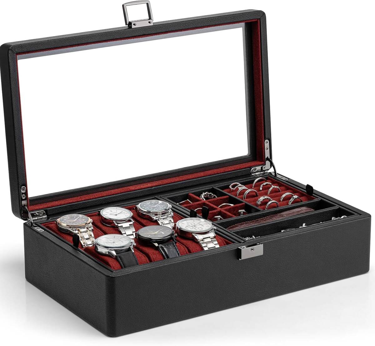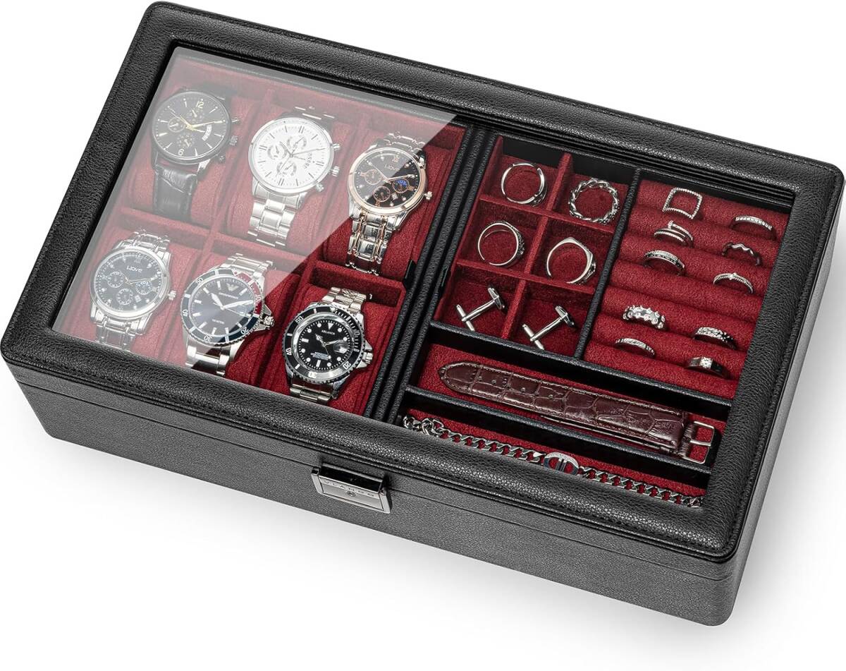 ◆高級感のあるPUレザー仕上げで、スタイリッシュなデザイン、時計やアクセサリーを上品に収納できます。