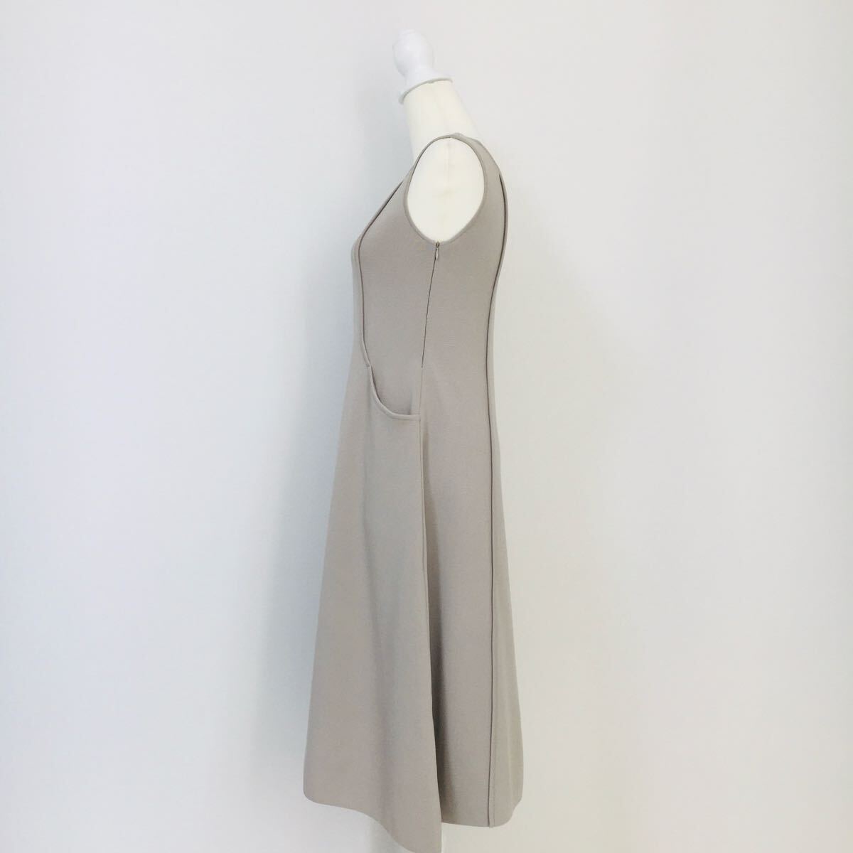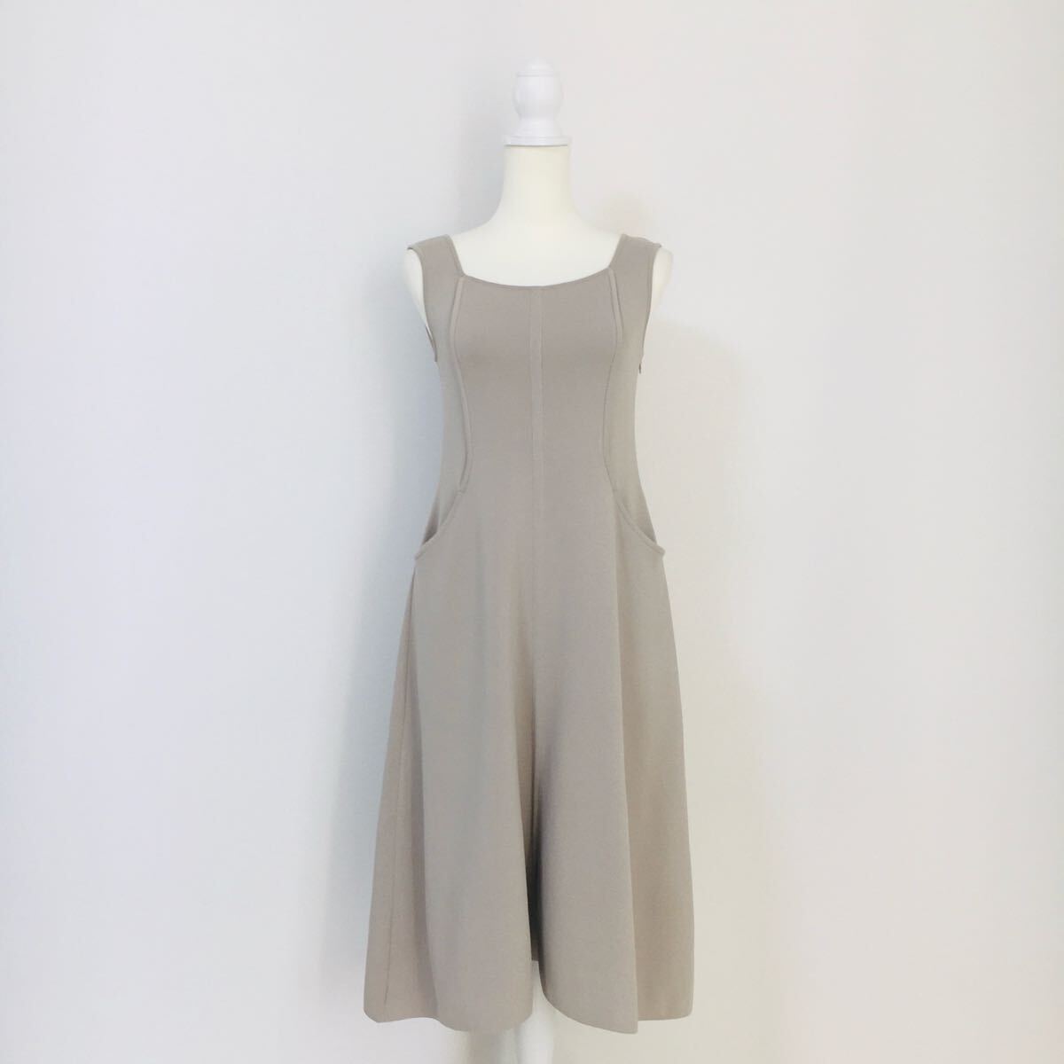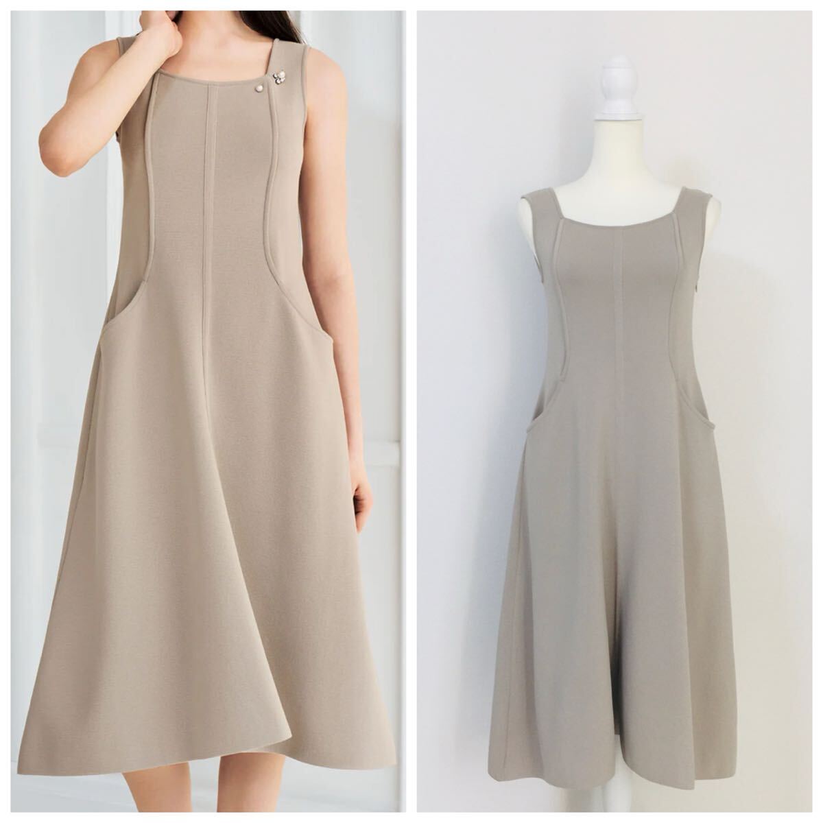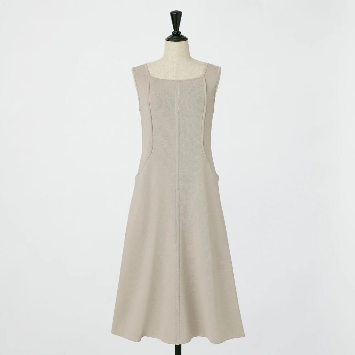 サイドのポケットのディティールとたっぷりとしたフレア分量がデザインポイントのニットワンピース。