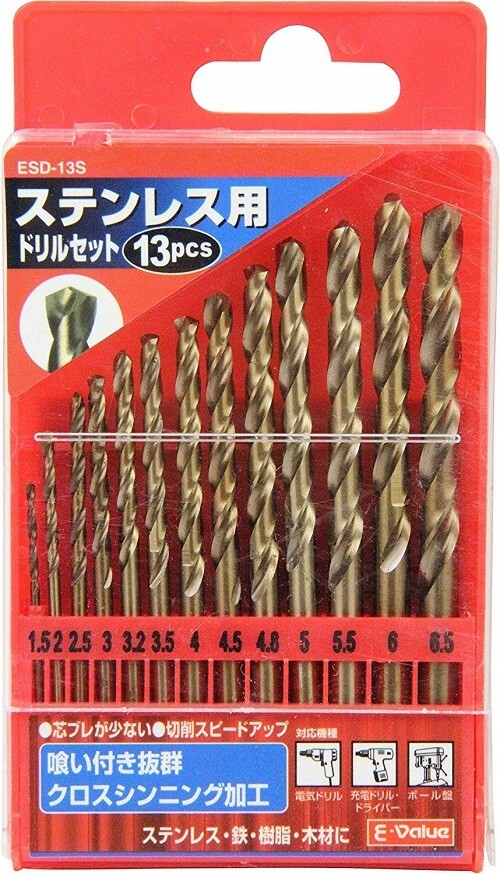 E-Value ドリルビット ドリルセット ESD-13S ステンレス用 電動 充電 ドライバー ドリルドライバー ボール盤