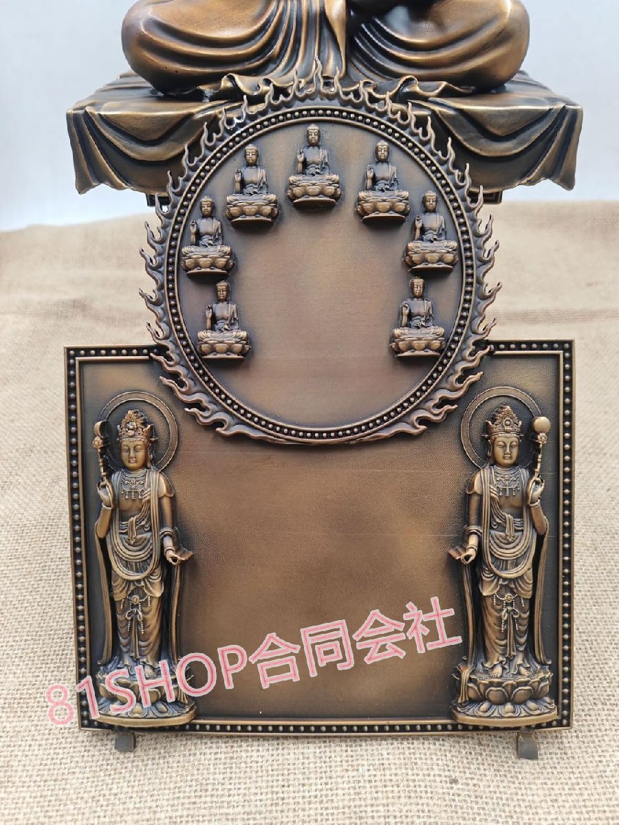 寸法:高さ38cm×巾17cm(薬師如来様)/材質:真鍮製 古美色/仏:薬師三尊<薬師如来・日光菩薩・月光菩薩>十二神将 回転可能