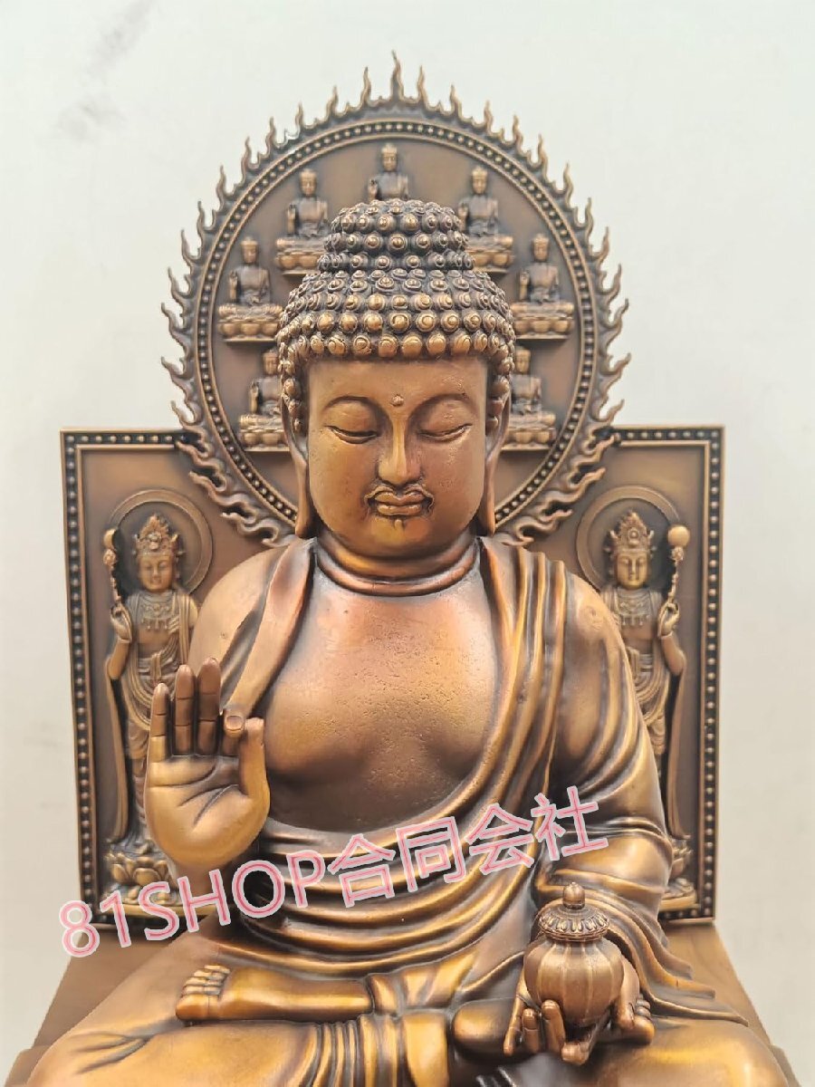 仏像 薬師三尊【薬師如来・日光菩薩・月光菩薩】十二神将 ブロンズ像 開運 守り本尊 『天台宗・真言宗・臨済宗』総高さ38 cm 厄除け合体仏