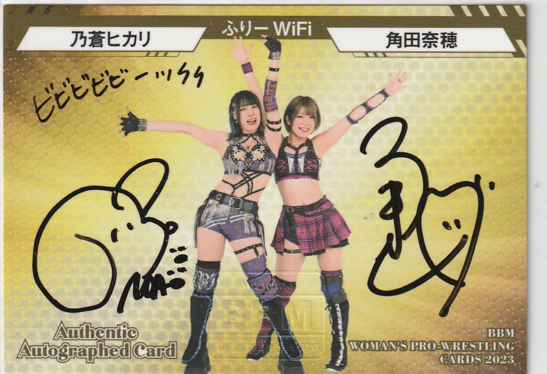 BBM2023女子プロレス 100枚限定コンボ版直筆サインカード 乃蒼ヒカリ&角田奈穂 即決 ふりーWiFi
