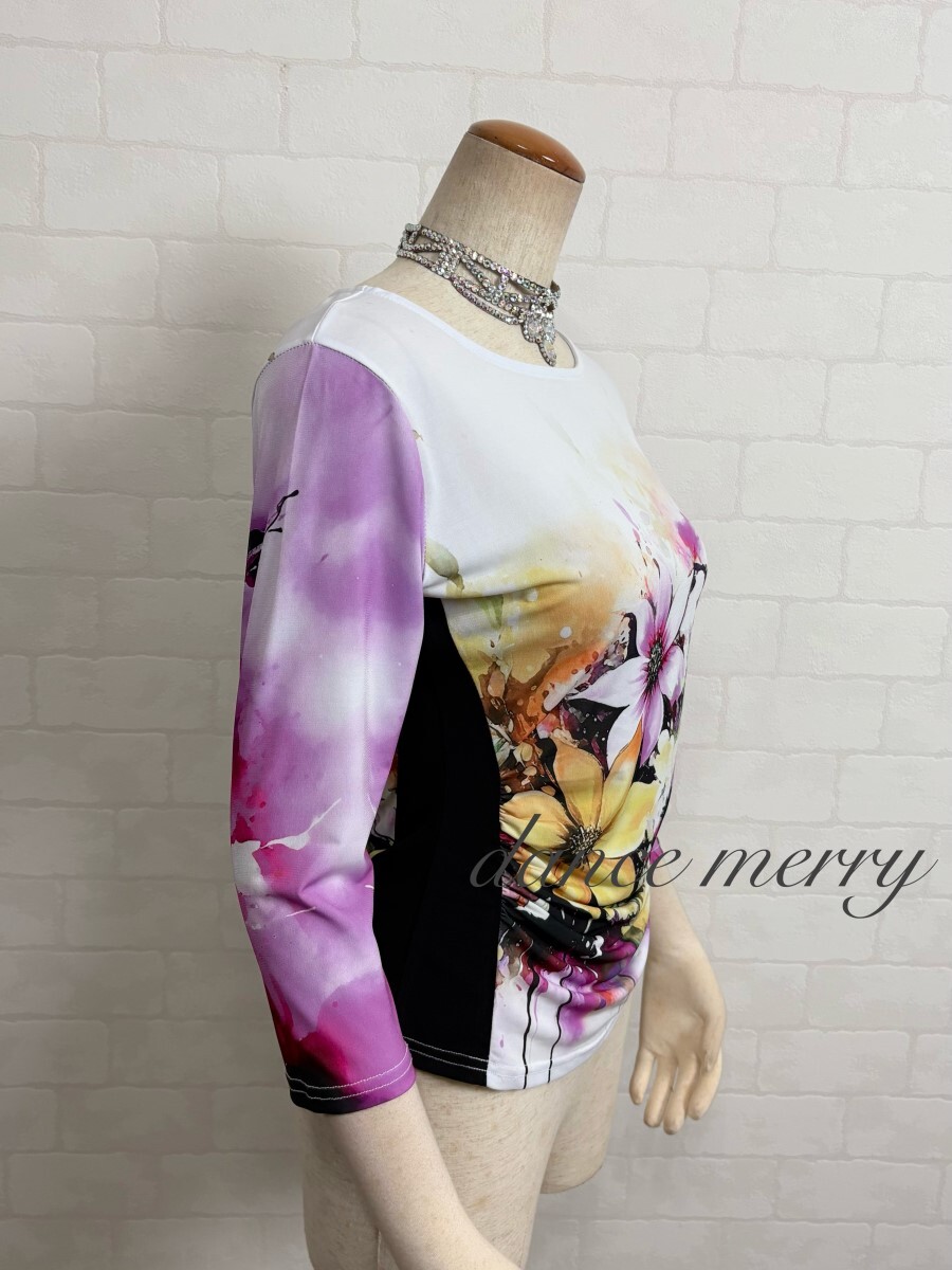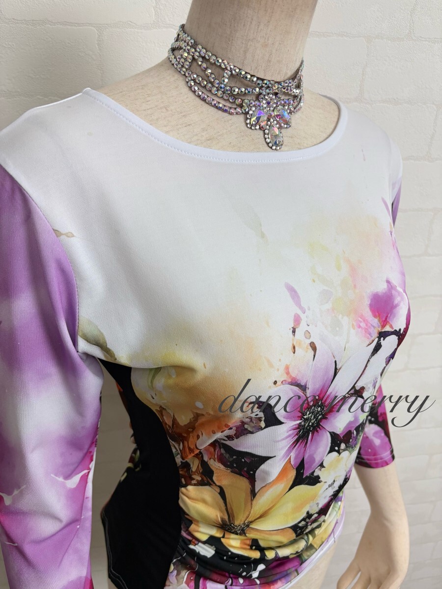 肌ざわりの良いストレッチ素材を使用した社交ダンス トップスです。