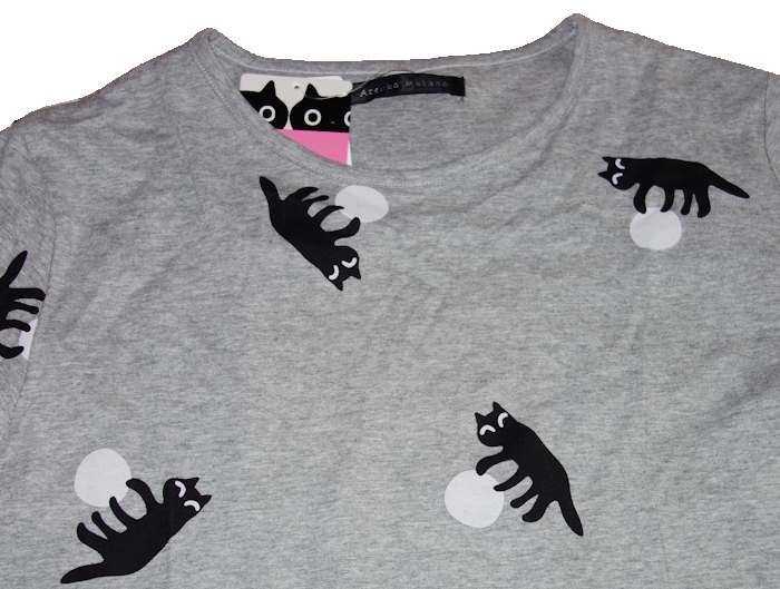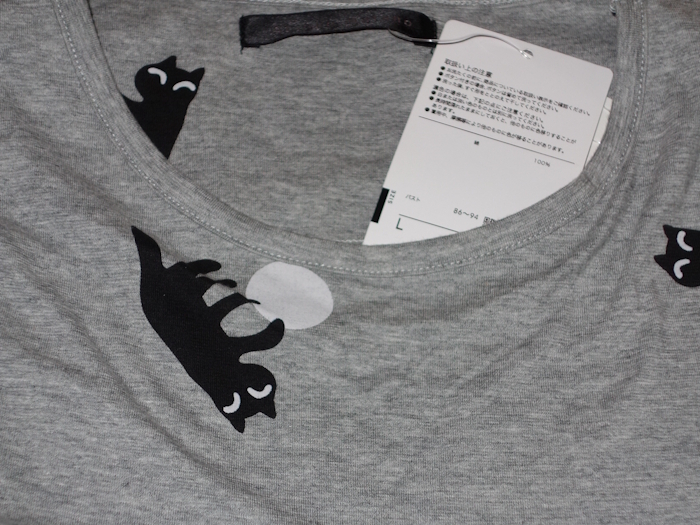 マタノアツコ★ワコール★長袖パジャマ★Lサイズ★ボールと遊ぶ黒猫さん★綿100% 天竺素材★グレー/GY★俣野温子