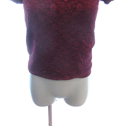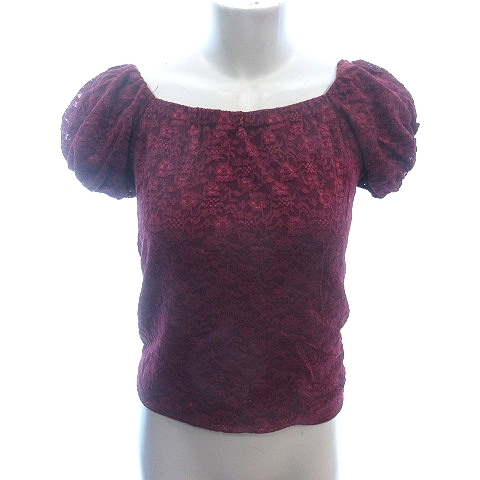 アラマンダ Allamanda カットソー スクープドネック 総レース ナイロン パフスリーブ フレアスリーブ 38 M ボルドー 赤 レッド /AU