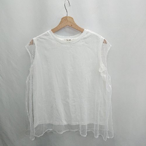 ◇ ⊂ Φ GeeRA ジーラ チュールレイヤード フレンチスリーブ カットソー サイズM ホワイト レディース E