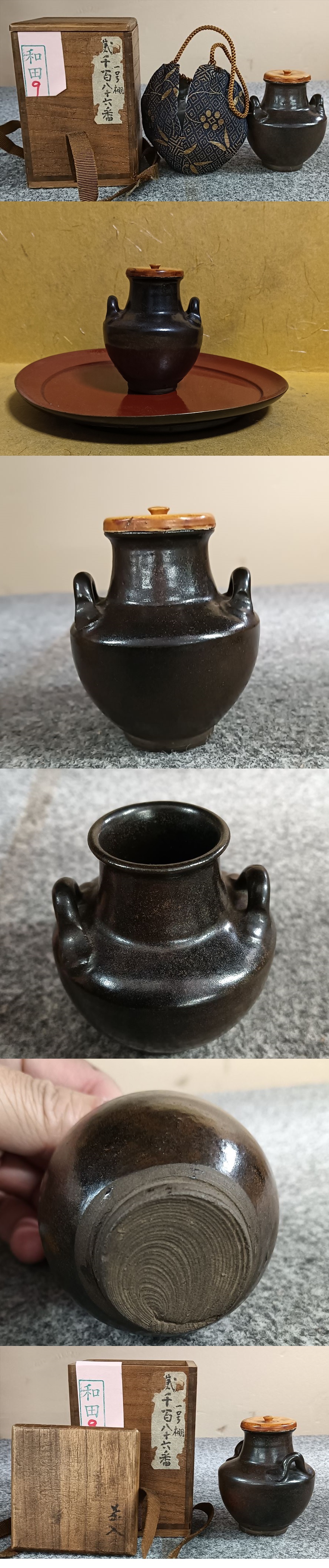 唐物 宋代 耳付茶入 伝世箱 唐物 茶器 茶道具 共識箱 蓋 仕覆添